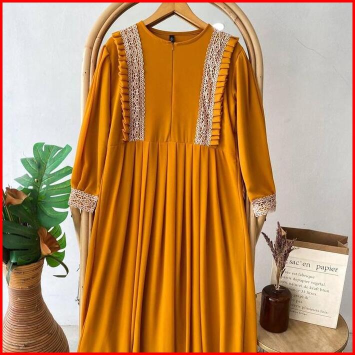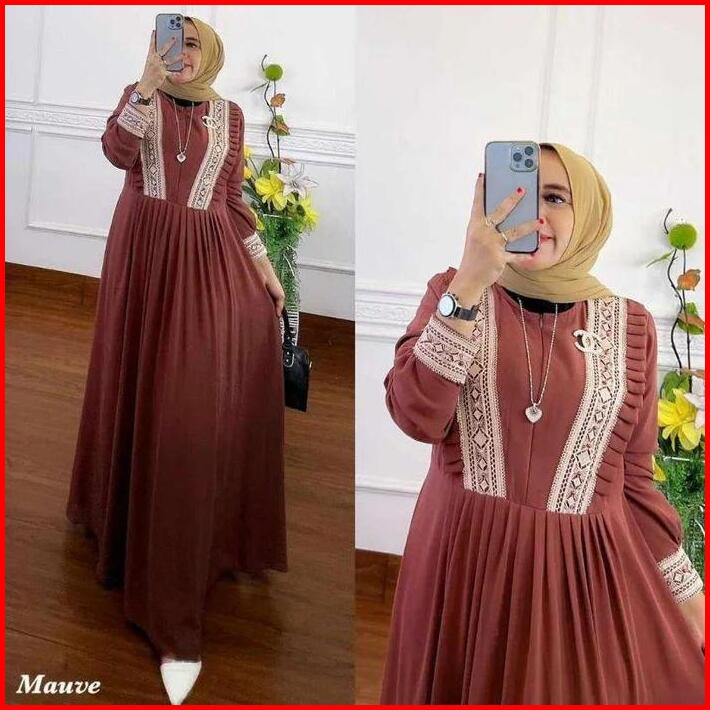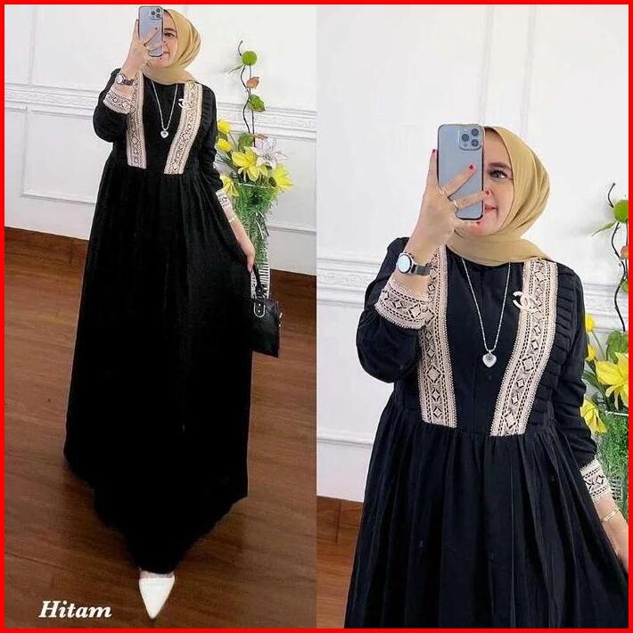 Gamis Wanita Helena Dress Maxy Ceruty Inner Puring Fit Muslim