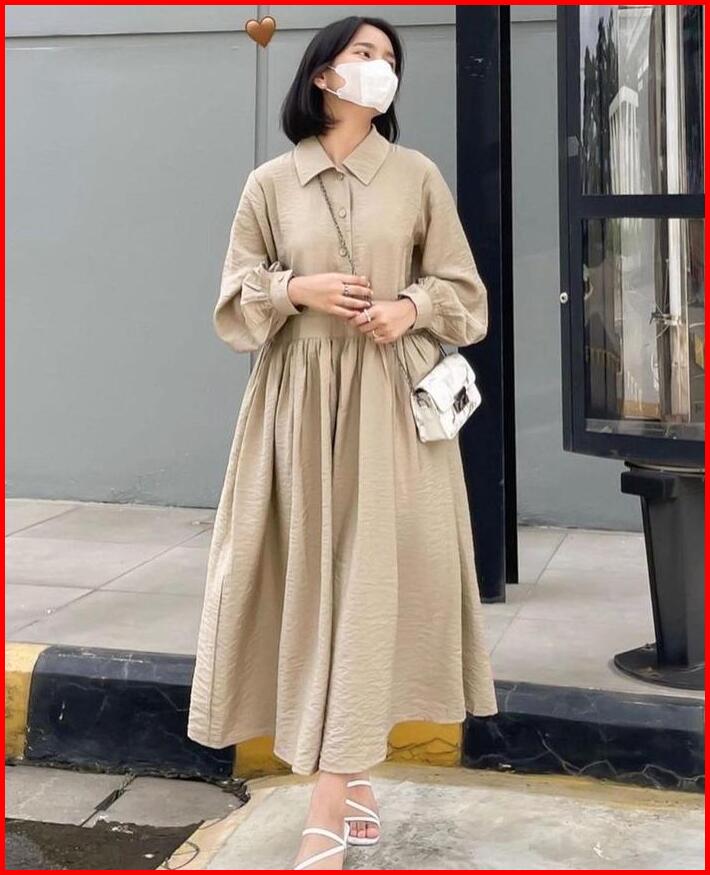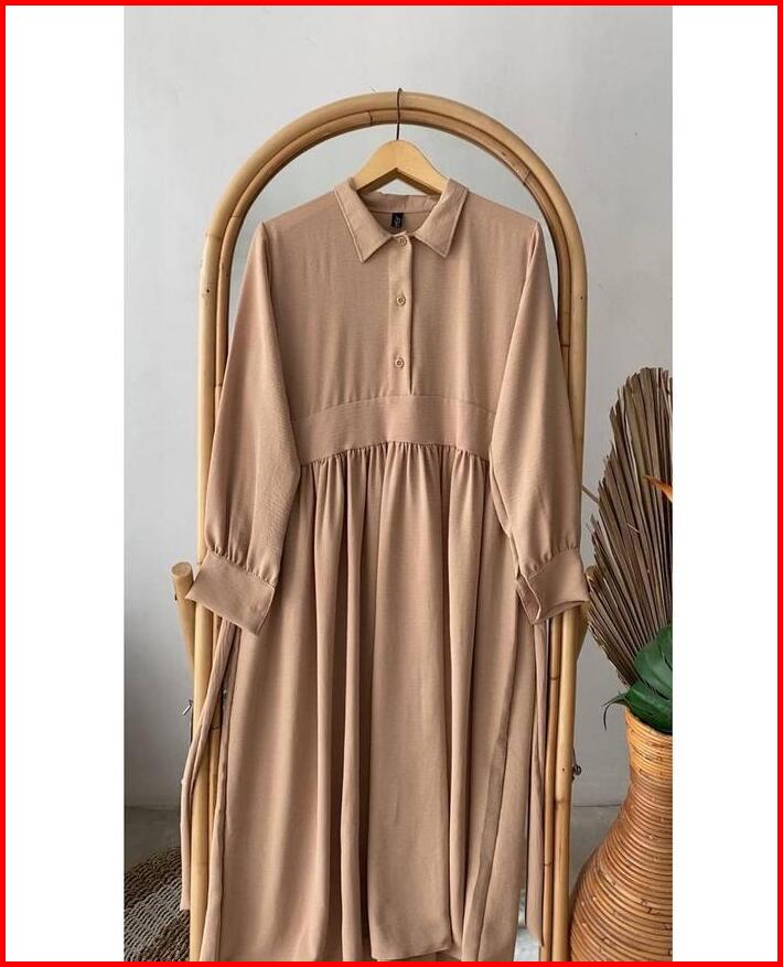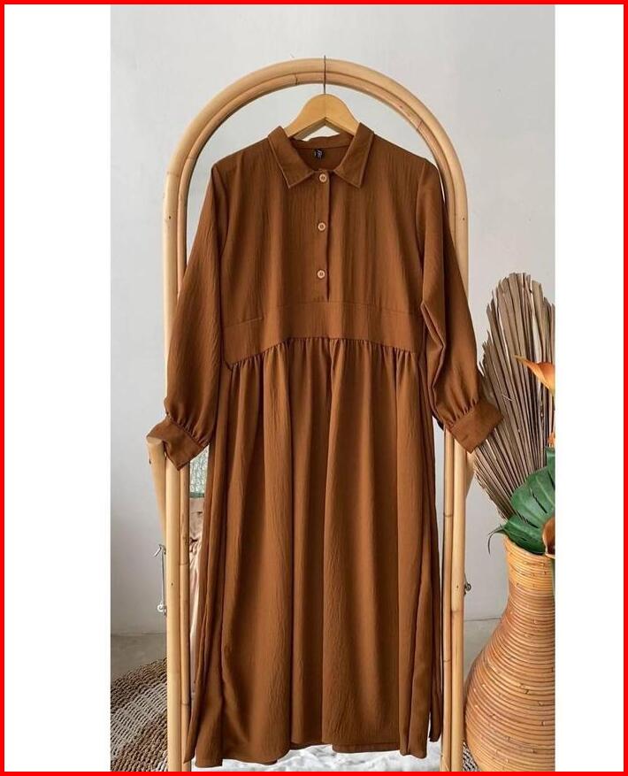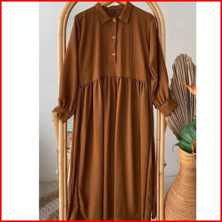 Gamis Casual Wanita Madaline Dress Busui Friendly Bahan Airflow Crinkle