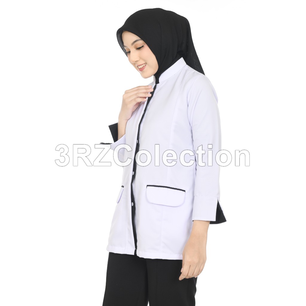 BAJU DINAS PUTIH LIST HITAM LEMBUT ATASAN PUTIH WANITA BAJU SERAGAM PUTIH DINAS CEWEK TERBARU