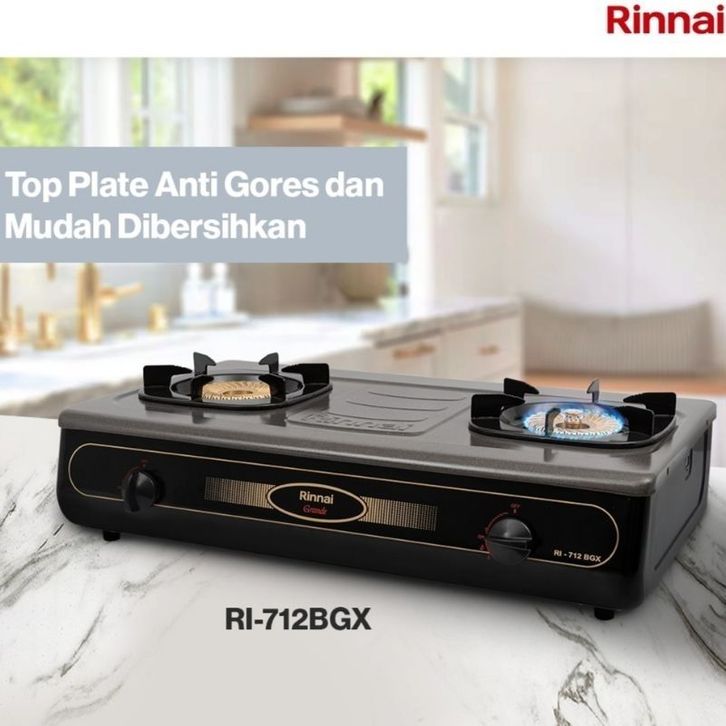 Kompor Gas Rinnai RI712BGX - Kompor Rinnai 2 Tungku Api Tornado RI712-BGX