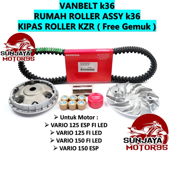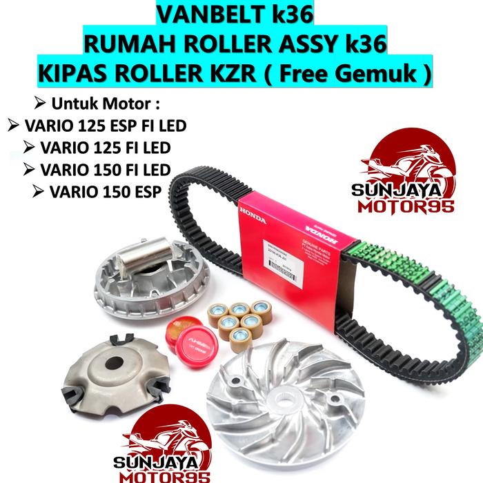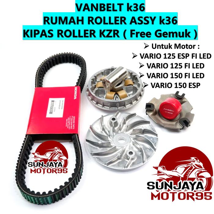 PAKET VANBELT K36 VARIO 150 LED SET RUMAH ROLLER + KIPAS VARIO 125 LED - HONDA PCX 150 LOKAL MOTOR MOTORCYCLE CVT - VANBELT + RUMAH ROLLER +KIPAS ROLER K36