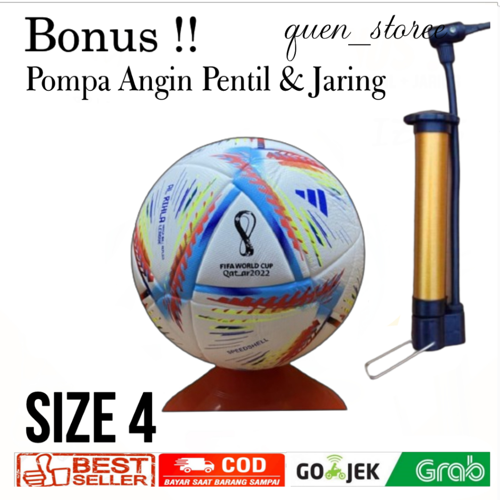 Bola Sepak Bola Kaki Size 4 Murah Berkualitas Gratis Pompa Pentil dan Jaring Bola
