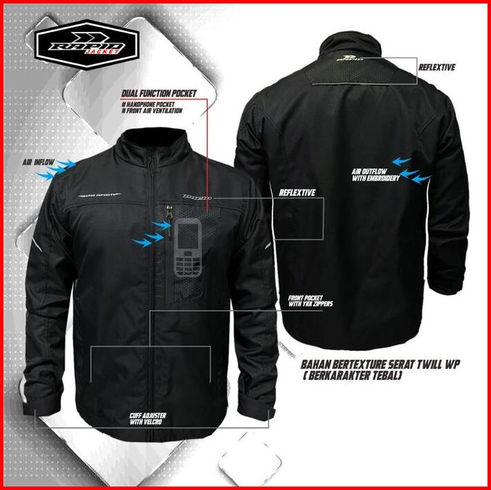 Jaket Motoran Harian Rapid Infinity Jacket Motor Material Premium Dengan Bahan Twill Anti Angin Air Berkarakter Tebal Di