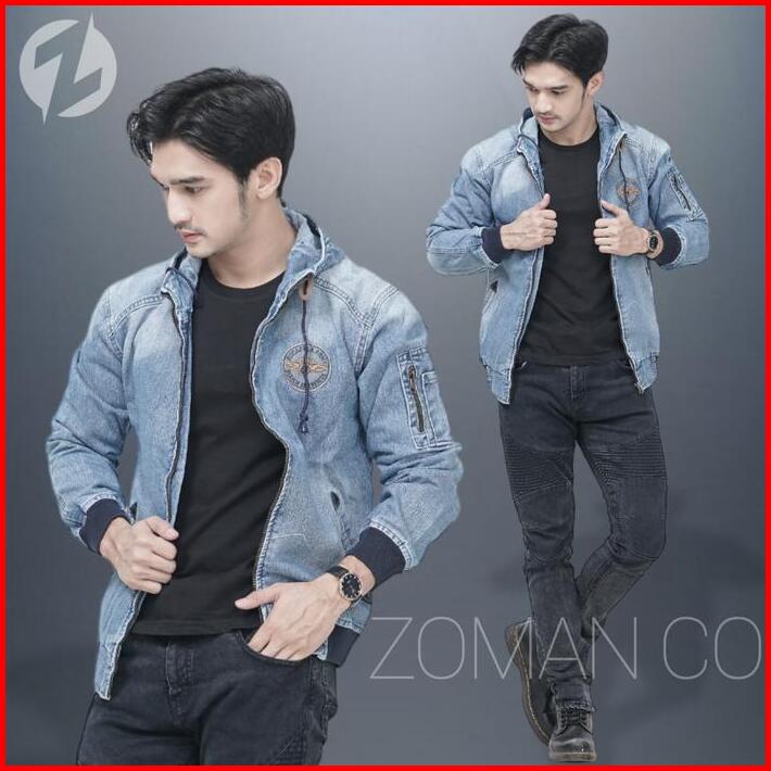 Jaket Bomber Jeans Kupluk Jaket Bomber Denim Blue Jaket Denim Size M L Xl Dan Xxl Jaket Jeans Jumbo Jaket Jeans Xxl Dasa