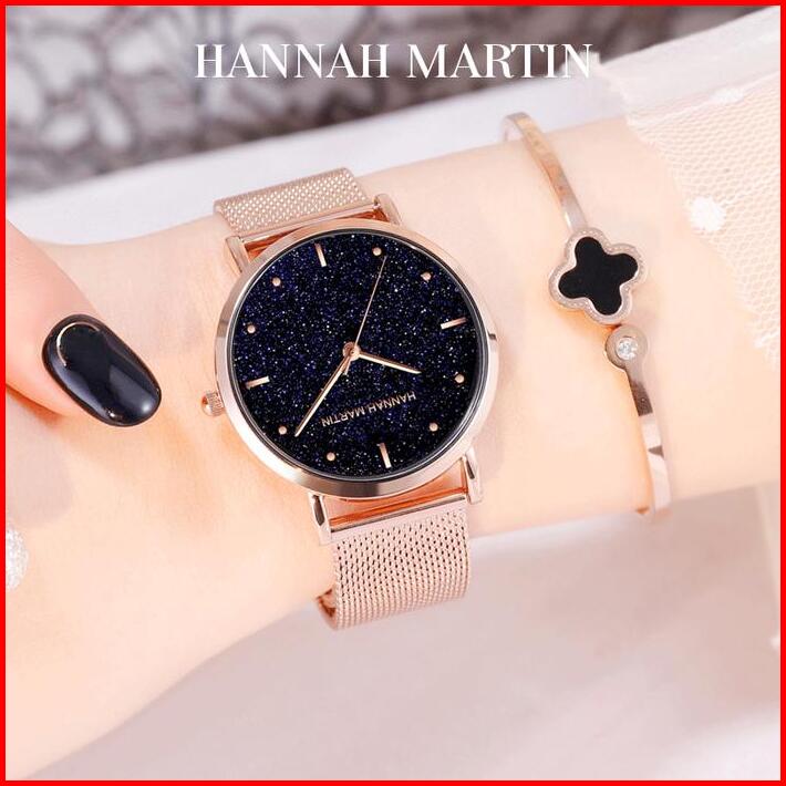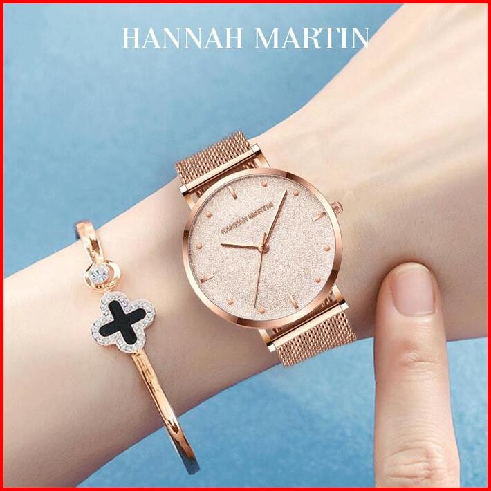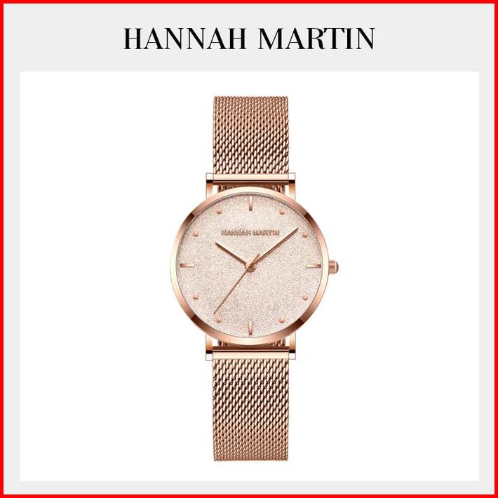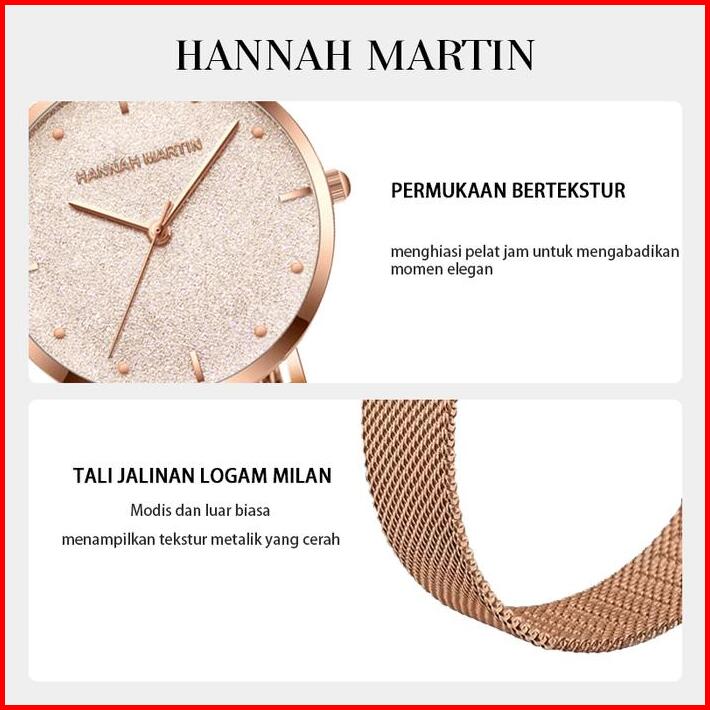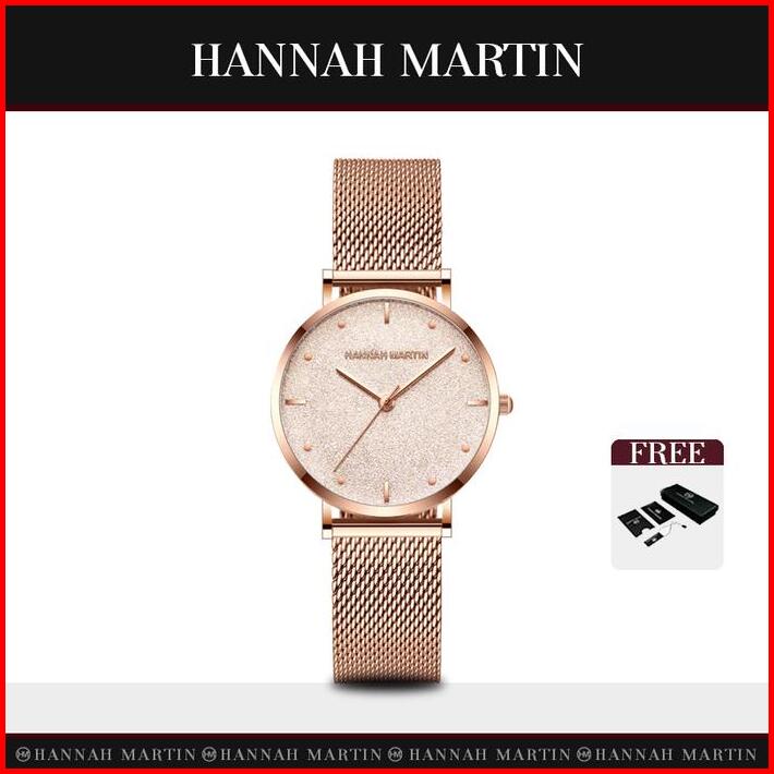 Hannah Martin Jam Tangan Wanita Mode Bisnis Display Kuarsa Jam Wanita Tali Jala Tahan Air Jam Tangan Cewek Ms36 Stainles