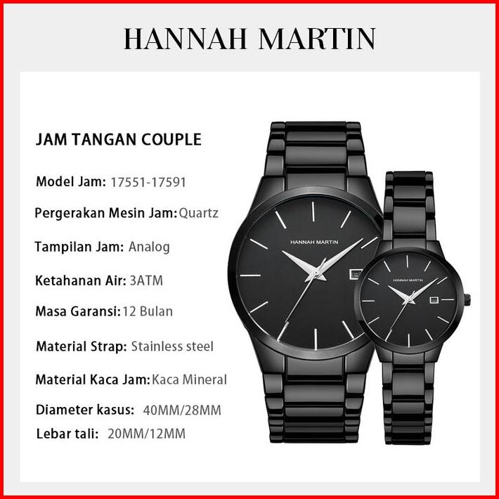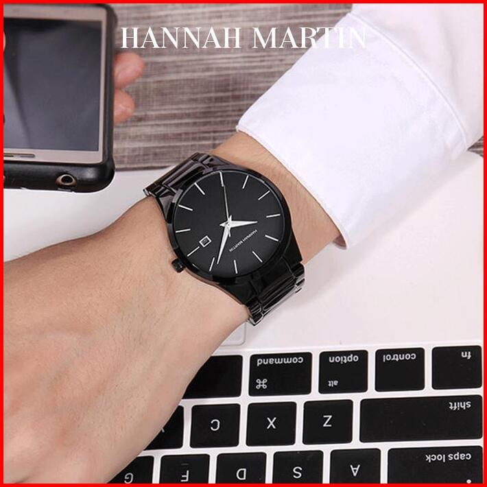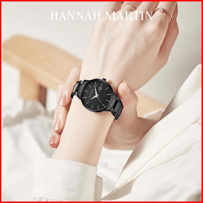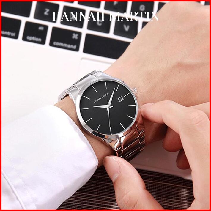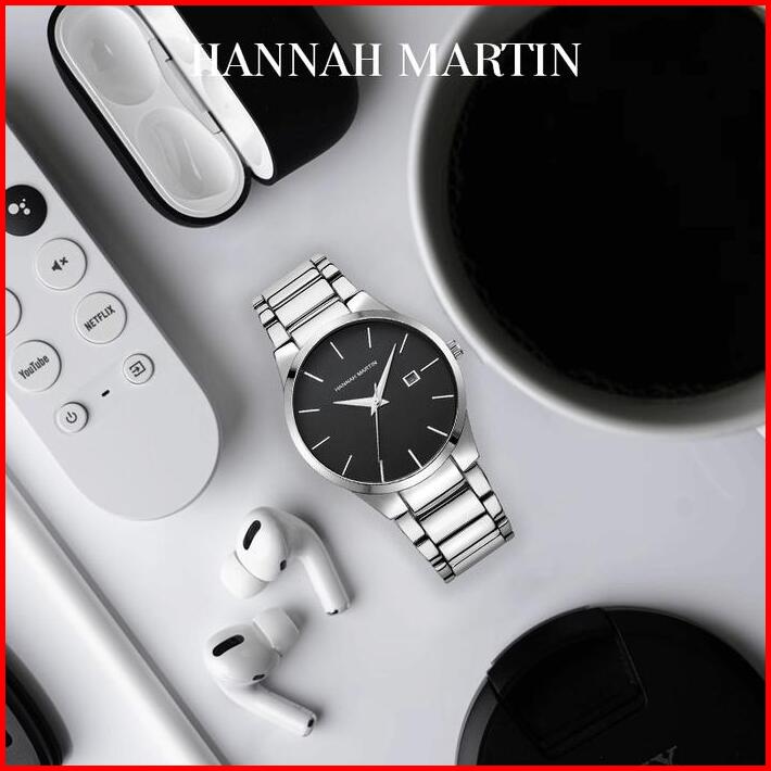 Hannah Martin Jam Tangan 100 Original Rantai Business Tanggal Analog Quartz Dial Bulat Gaya Modern Free Box Watches Jam