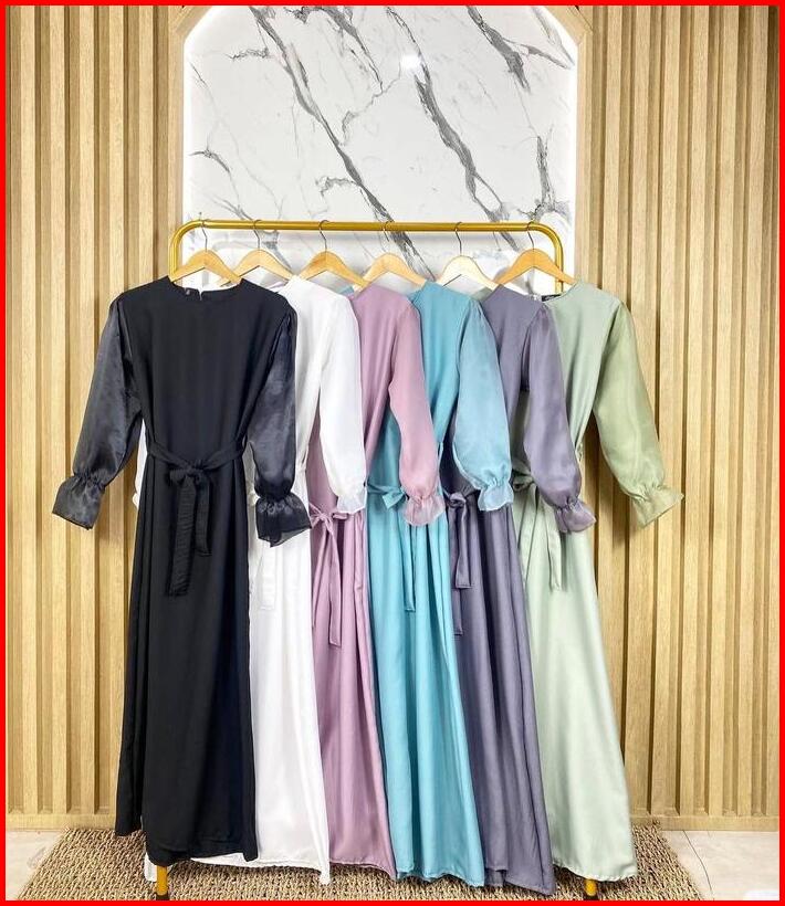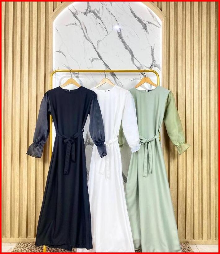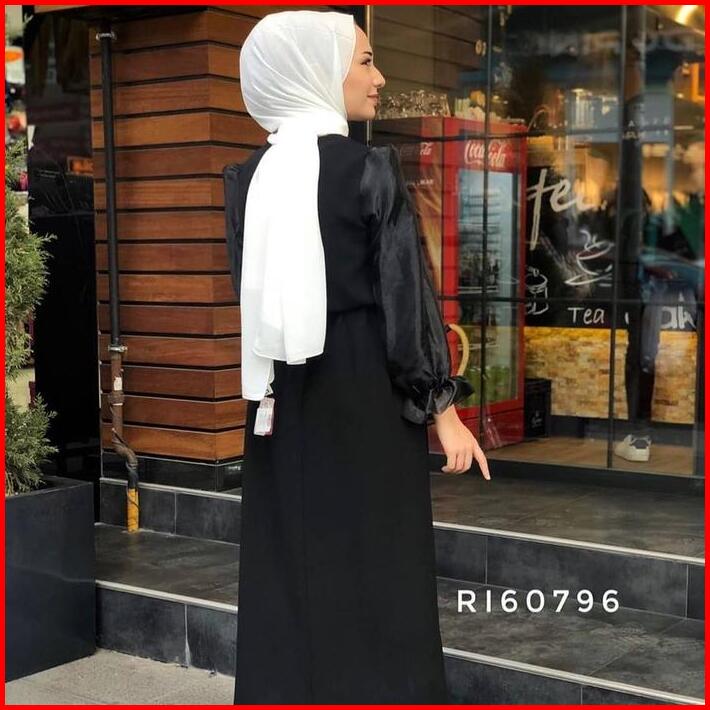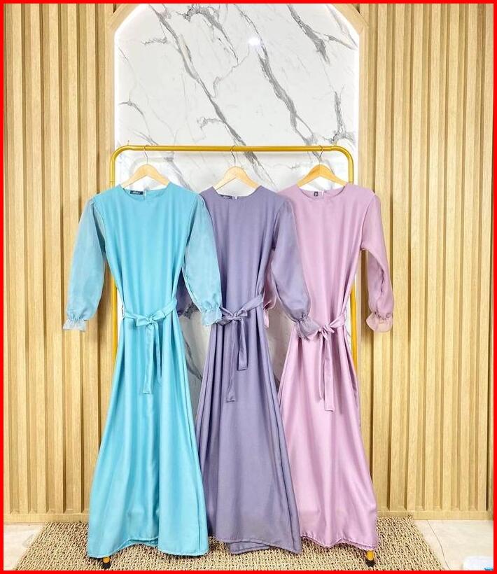 Dress Simple Elegan Victory Dress Model Lengan Balon Crepe Fit Pesta