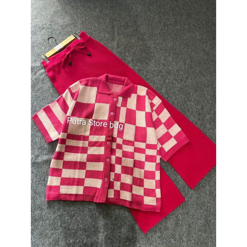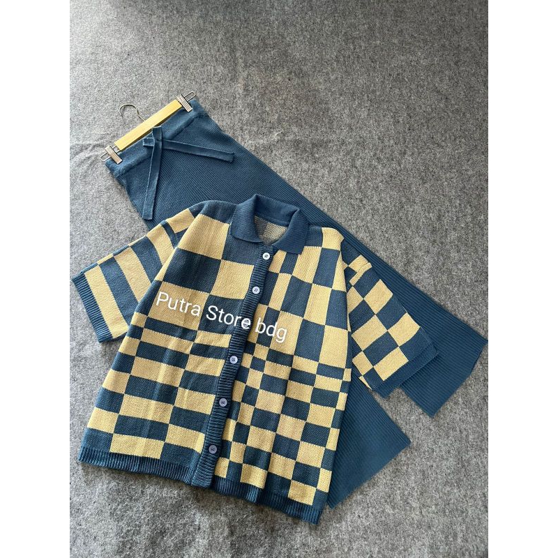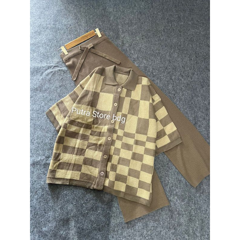 one set setelan Fuji outher polo oversize dan kulot rajut premium