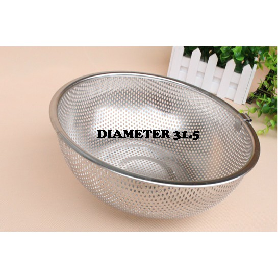 Baskom Bolong tanpa pegangan 31,5cm, dan 28,5 cm Peniris Sayur, Bowl, Beras ,Stainlees Steel
