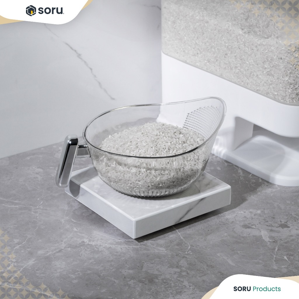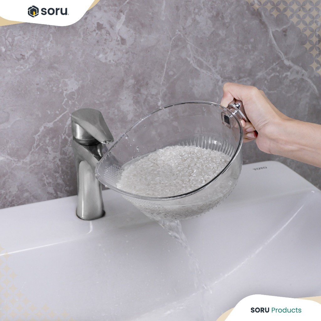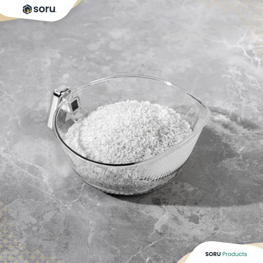 SORU Saringan Pencuci Beras Transparan Wadah Cuci Beras Buah Sayur