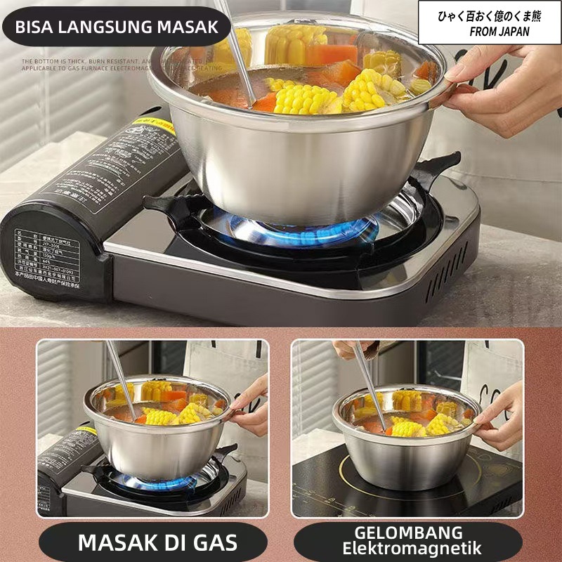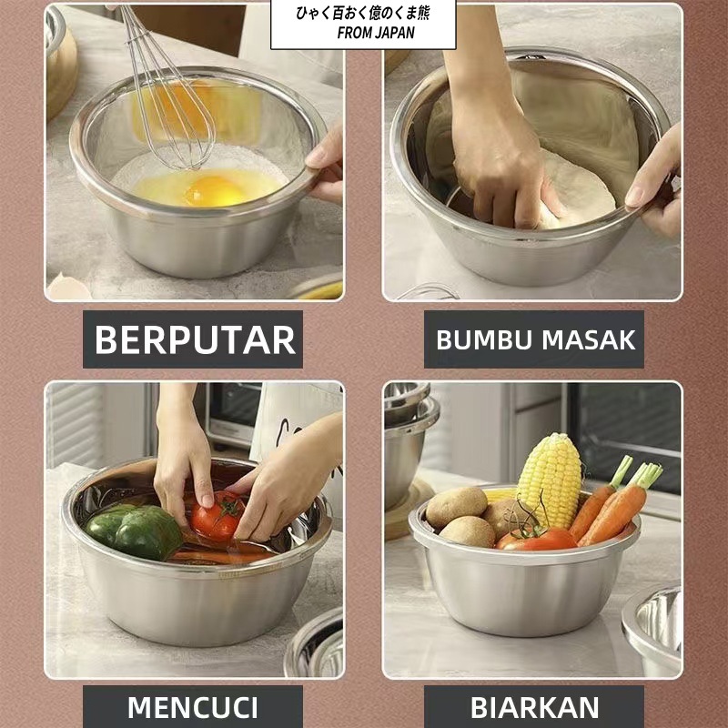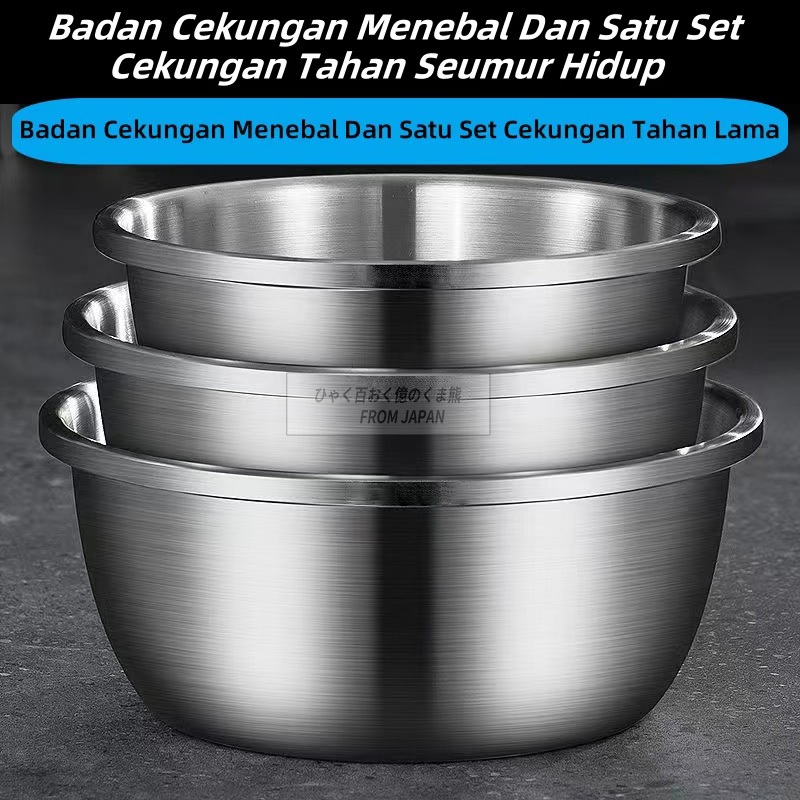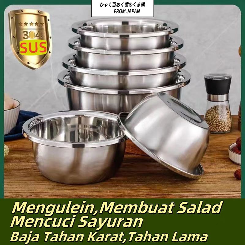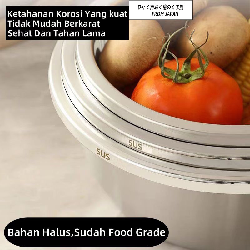 【】Baskom Set 5 PCS 34-32cm Stainless Steel Tebal Dapur Wadah Cuci Beras Buah Sayur Baskom Dapur Bakul Saringan
