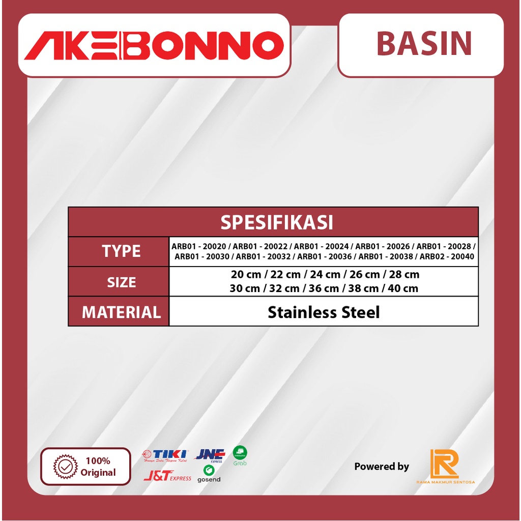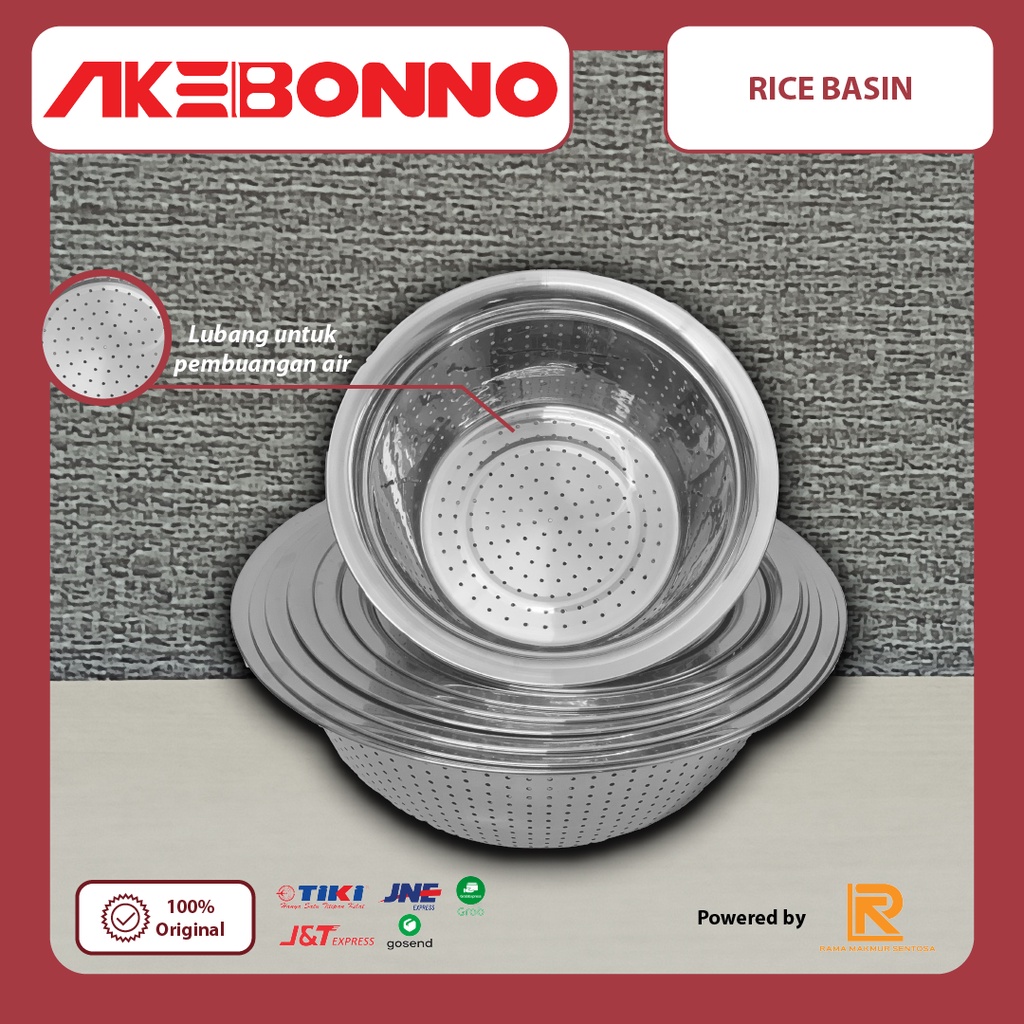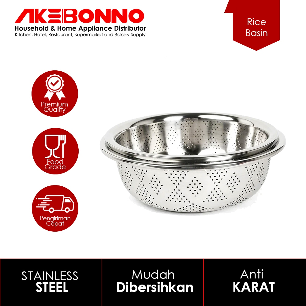 AKEBONNO - Rice Basin/Wadah Cuci Beras Multifungi/Mangkok Stainless Steel 20-40Cm