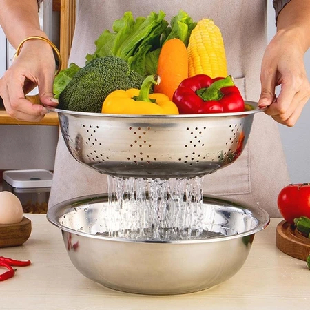 Baskom Set 3IN1 dengan Parutan Tirisan Multifungsi Stainless Steel Wadah Cuci Beras Buah Sayur