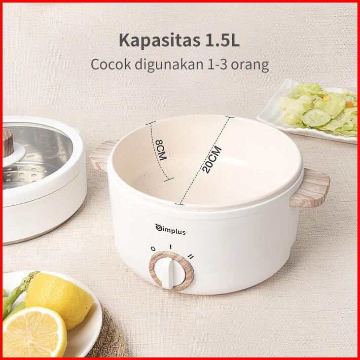 Simplus Panci Elektrik 1.5l Multifungsi Low Watt 630w Panci Keramik Anti Lengket Dengan Steamer Tahan Karat Lebih Aman U