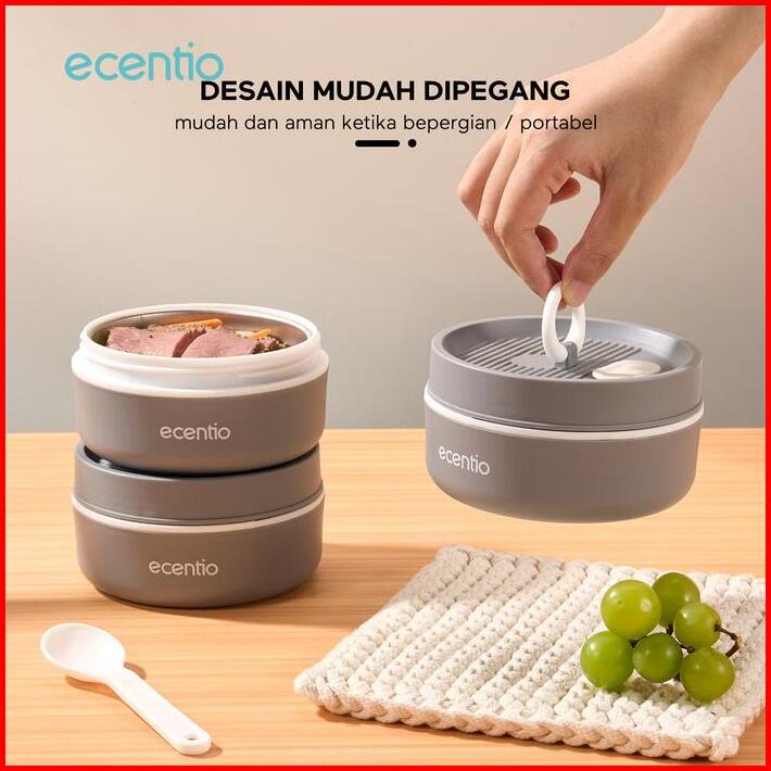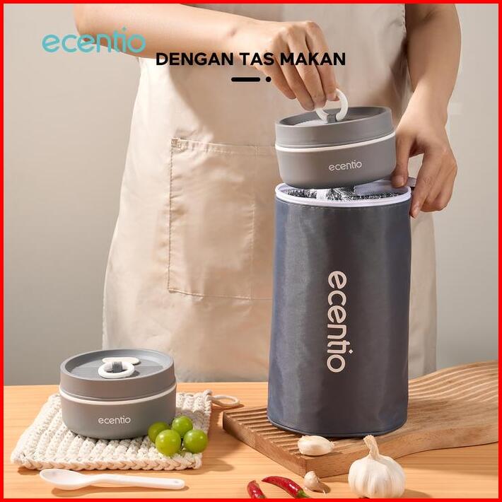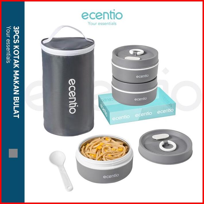 Ecentio Lunch Box Tas Set 3pcs Kotak Makan Anti Tumpah 304 Stainless Steel Tas Bekal Dan Free Sumpit