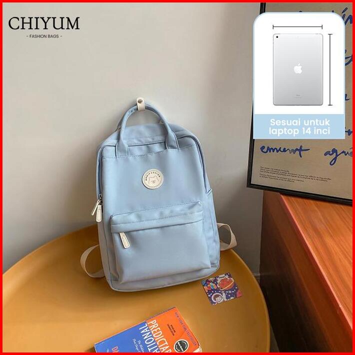 Chiyum Tas Ransel Wanita Korean Style Sekolah Cewek Stylish Backpack Punggung Sederhana Nilon Besar Ransel Import Murah