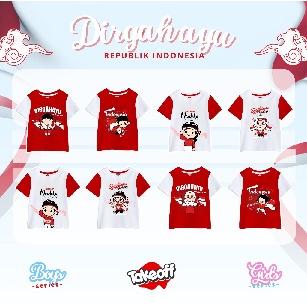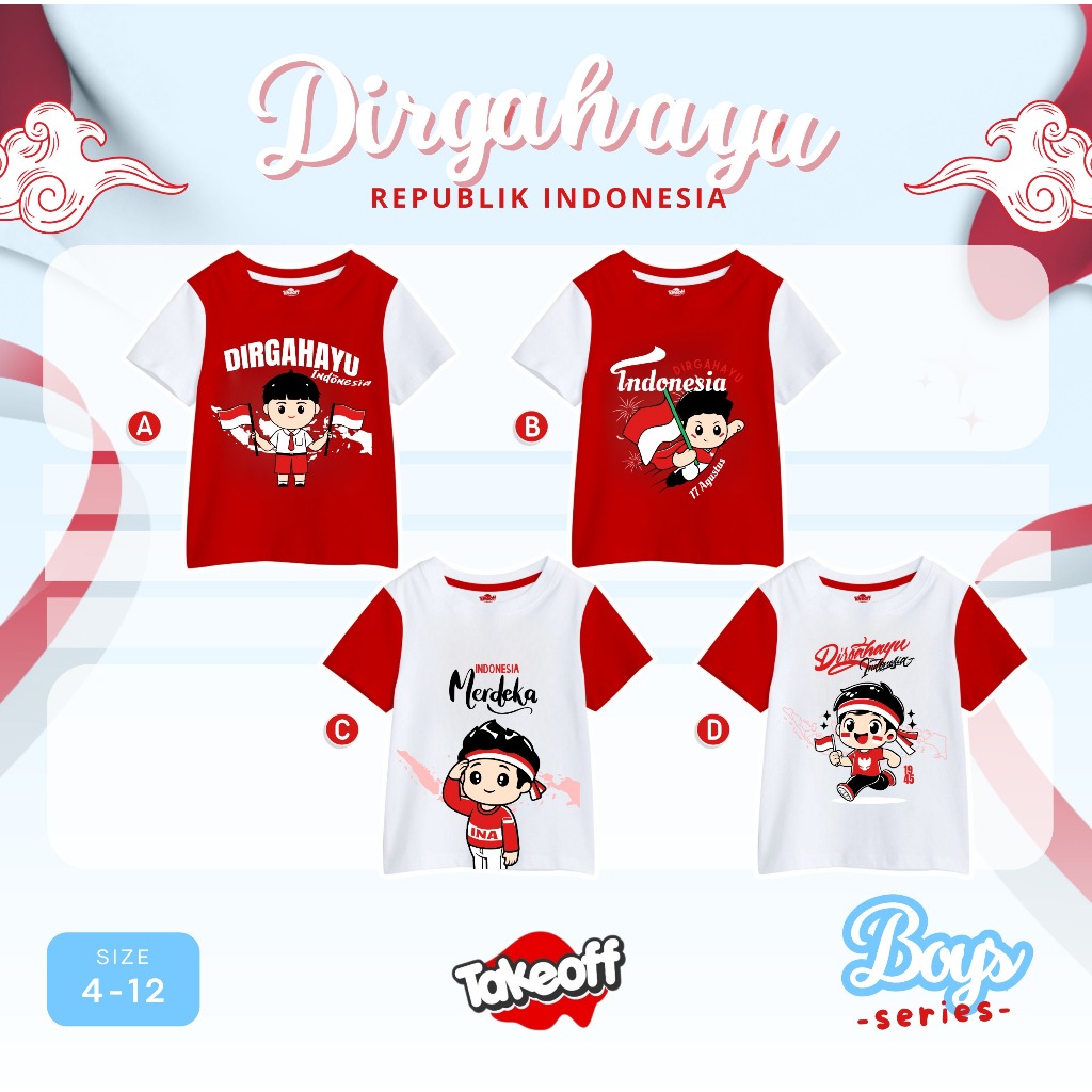 Kaos Anak Spesial Kemerdekaan Unisex Size 4-12 By Takeoff