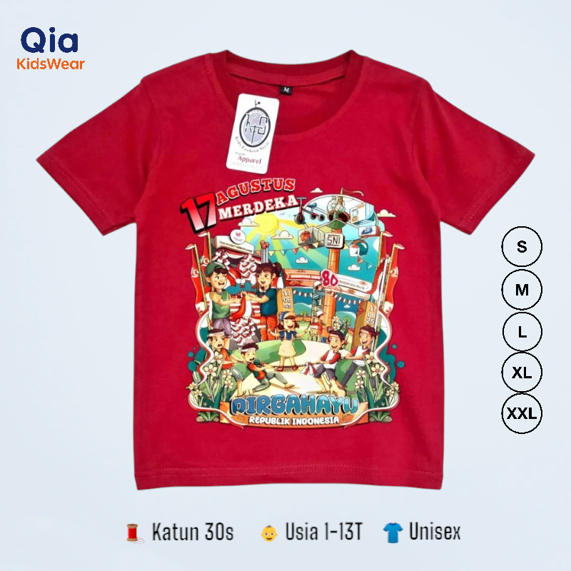 Kaos Anak 17 Agustus | Baju HUT RI Tema Lomba Kemerdekaan Unisex Katun 30s | QiaKidsWear