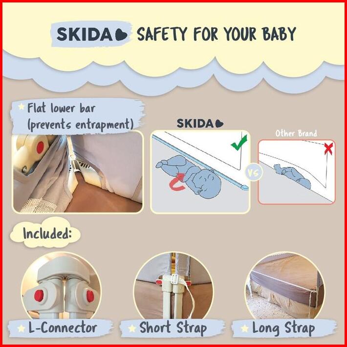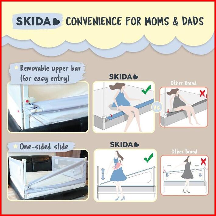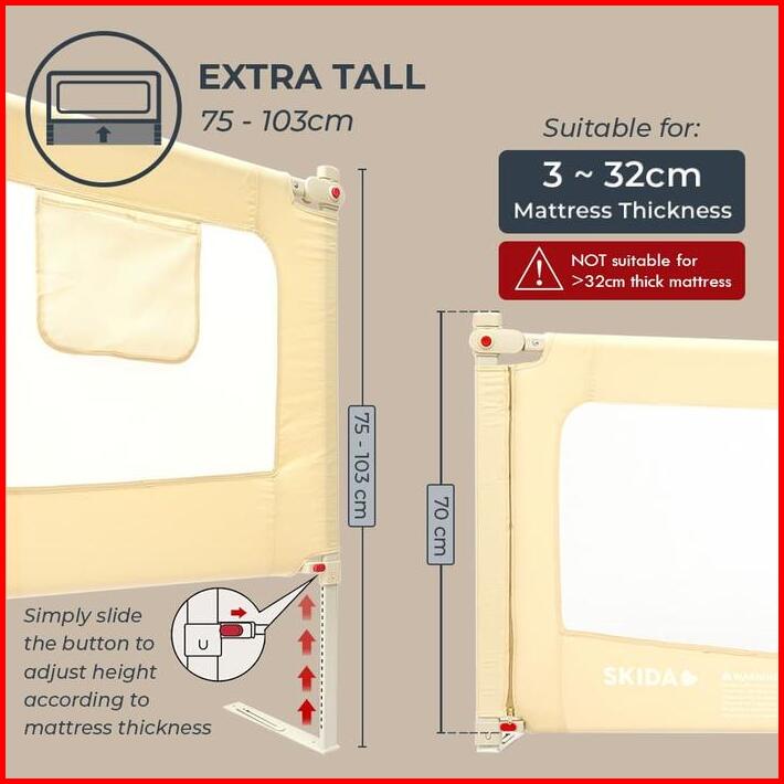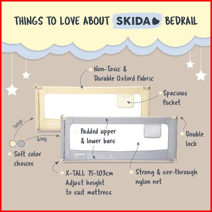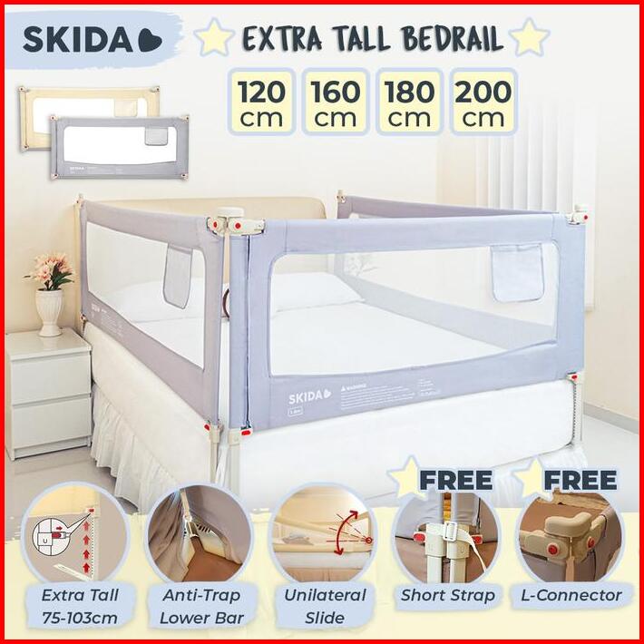Skida 200cm Extra Tall Bedrail Pagar Ranjang Kasur Bayi Bed Guard Rail