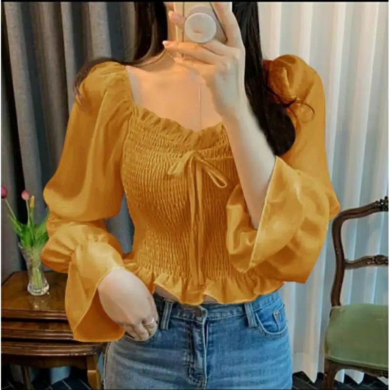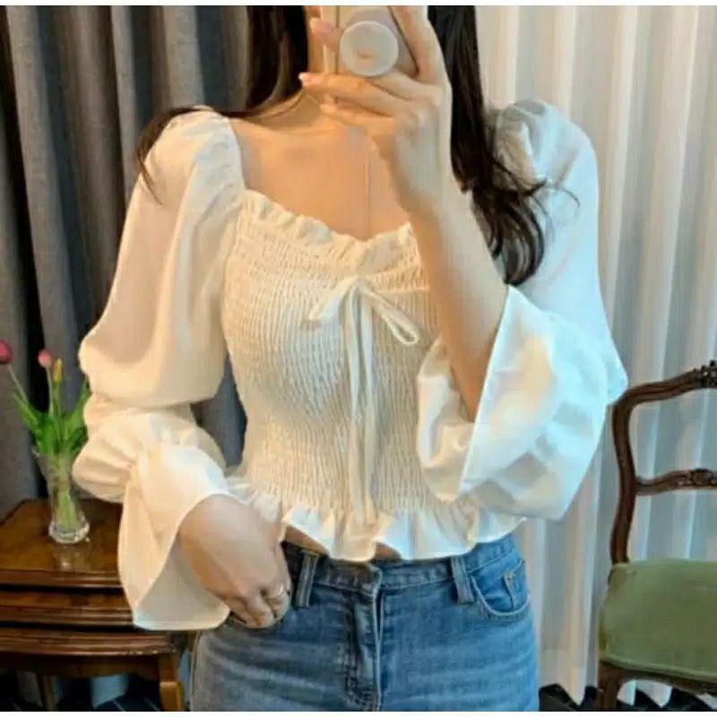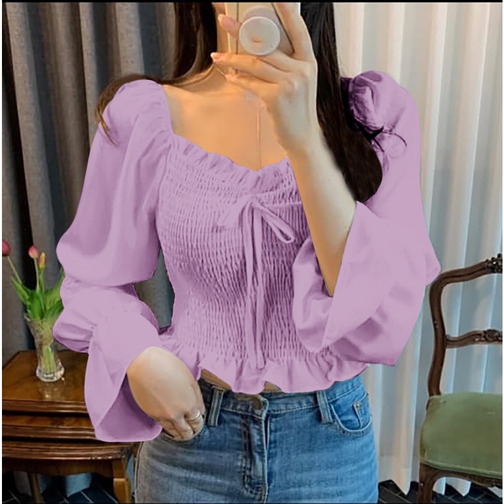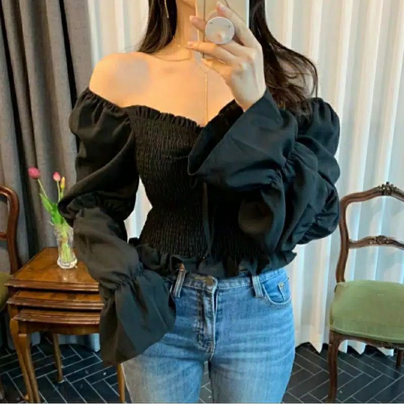 Toply Shop Top Sabrina Full Karet Korea / Blouse Wanita Top