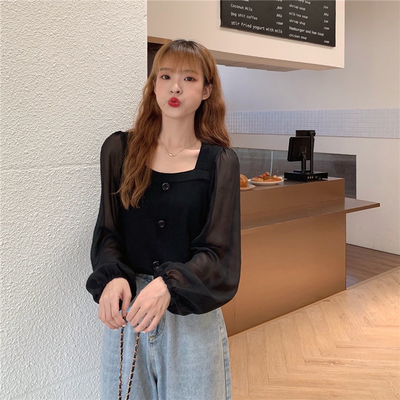 AJW Blouse Wanita Kekinian Korean Style Rajut Lengan Panjang Import Premium ZY XAC | Atasan Blouse Rajut Wanita Kor