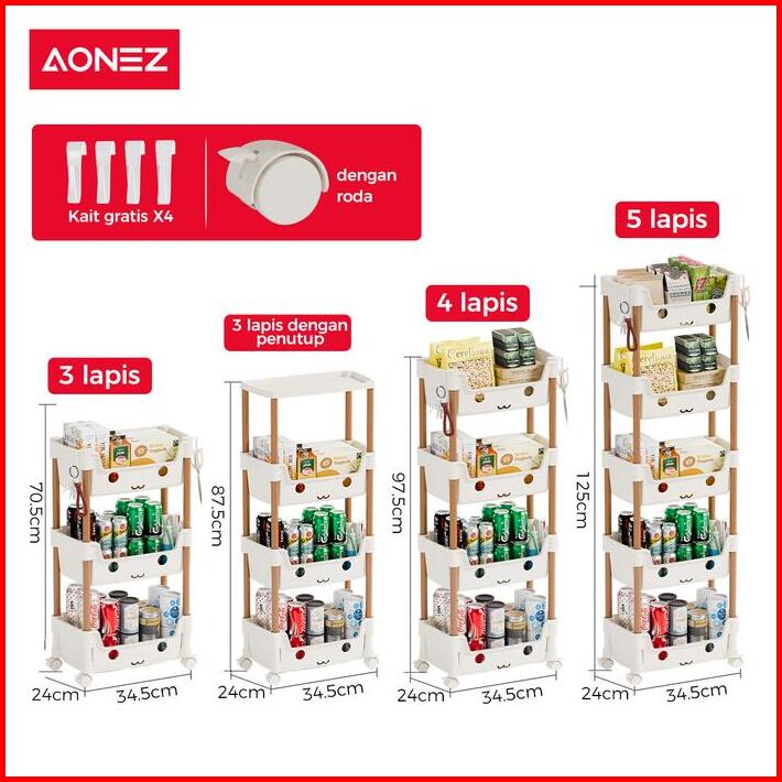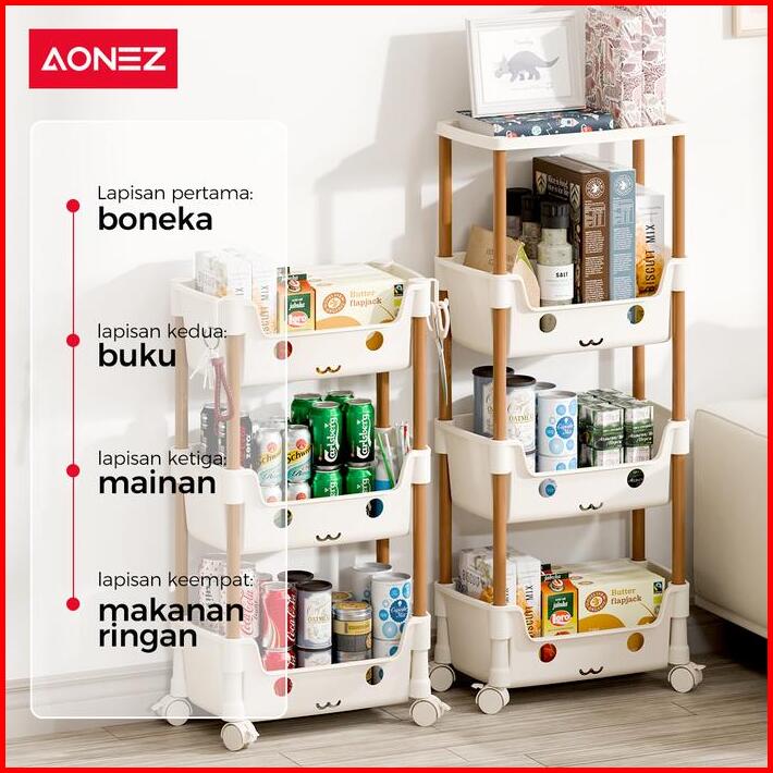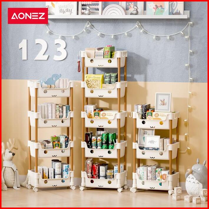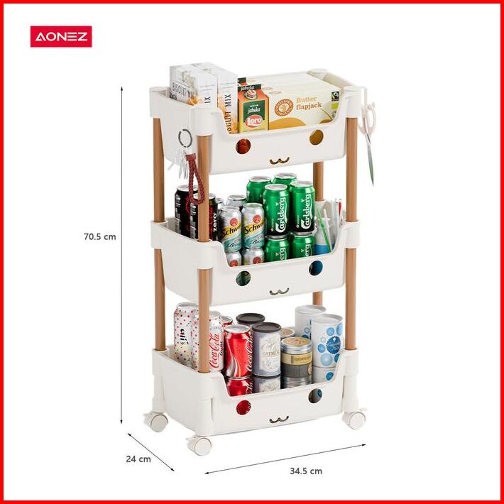 Aonez Rak Smiley Susun Penyimpanan Serbaguna Rak Trolley Dengan Roda
