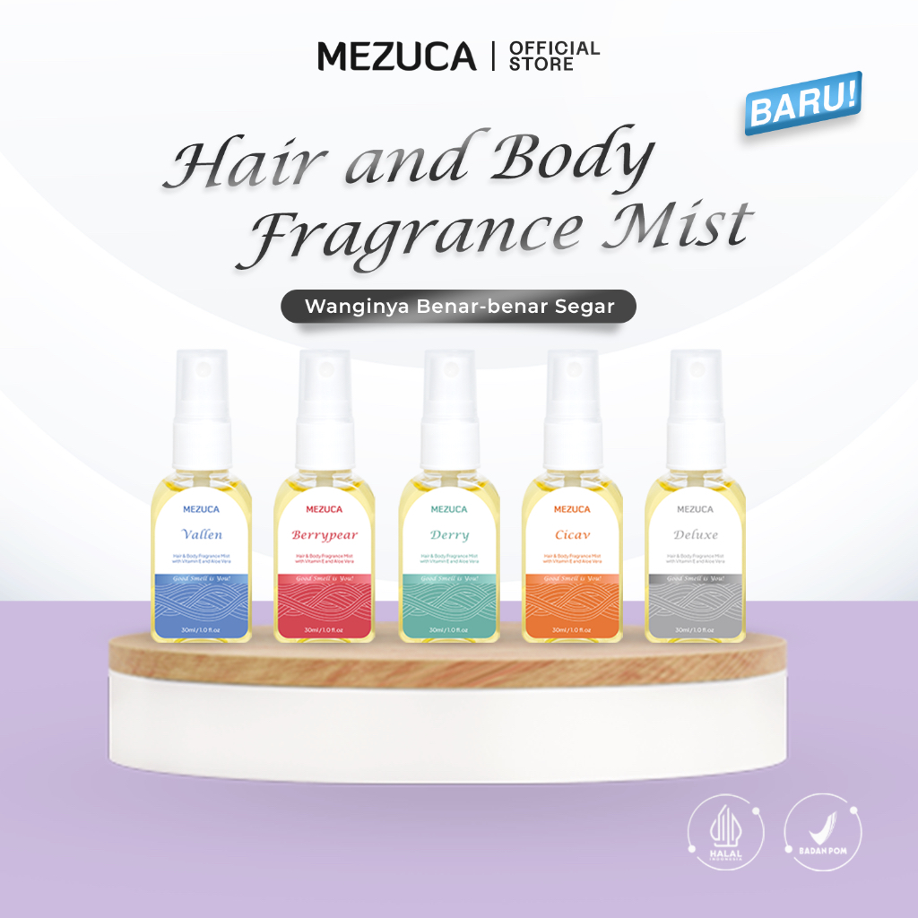 Dapat 5 Botol Parfum Hair & Body Fragrance Mist Mezuca 30mL with Vitamin E and Aloe Vera BPOM