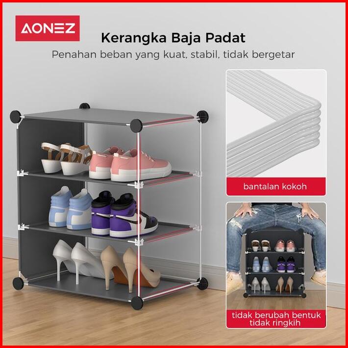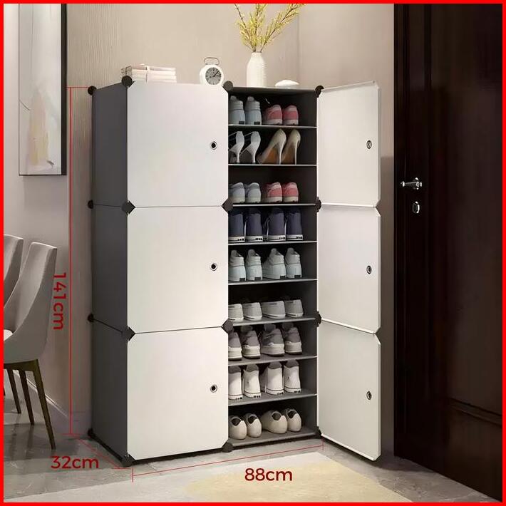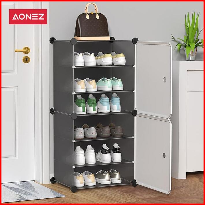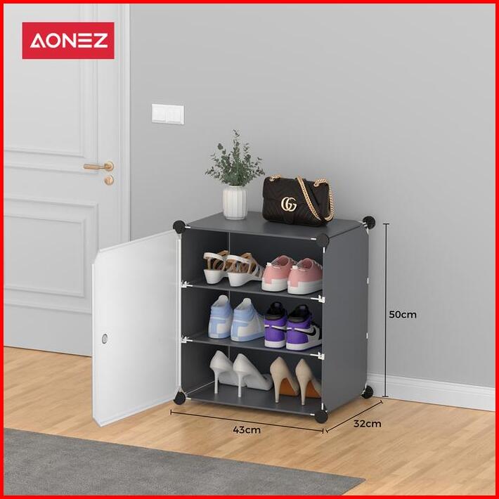 Aonez Rak Sepatu 1 Baris 9 Slot Plastic Lemari Sepatu Abu-abu