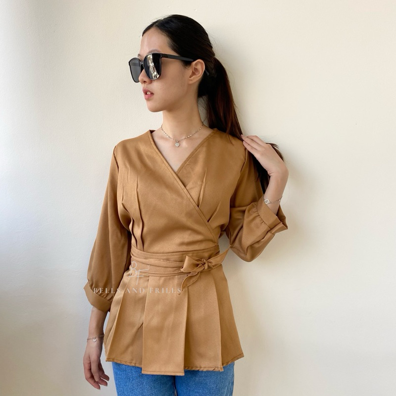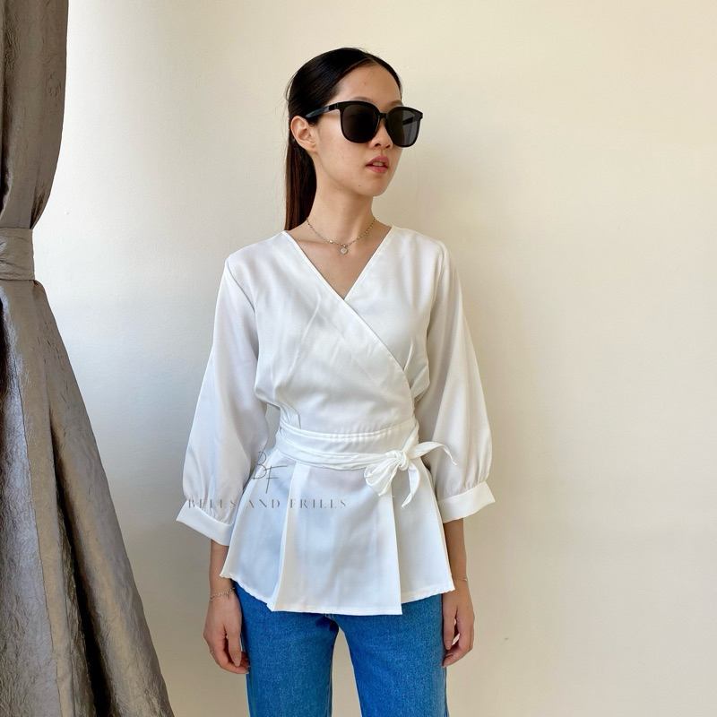 ADELIA Blouse Long Sleeve Kimono 3 Ways Top / Blouse V Neck Casual / Atasan Wanita Korea Hijab / Atasan Kebaya Kond