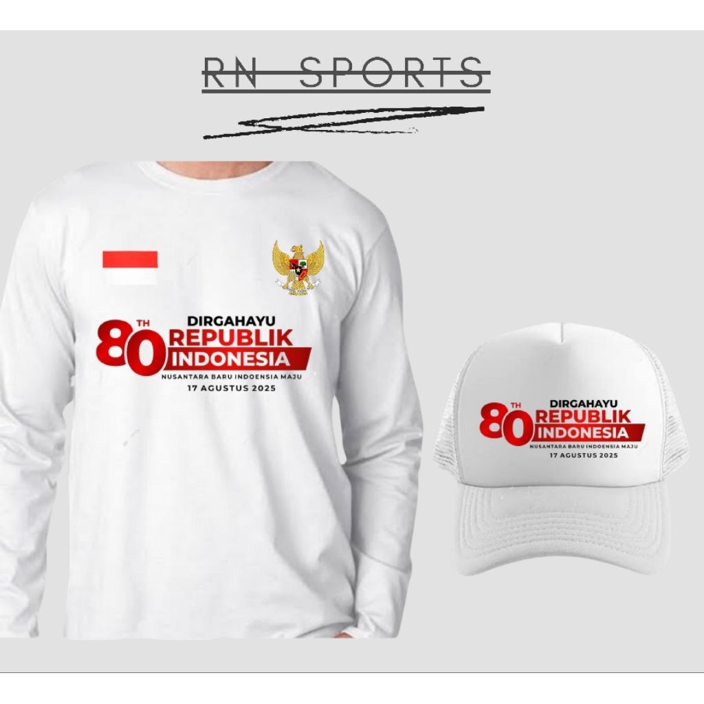 KAOS LENGAN PANJANG BONUS TOPI HUT RI KE 80 TAHUN INDONESIA MODEL TERBARU // KAOS PANJANG HUT RI KE 80 TAHUN INDONESIA B