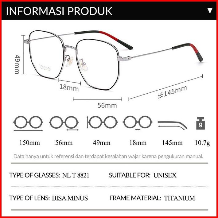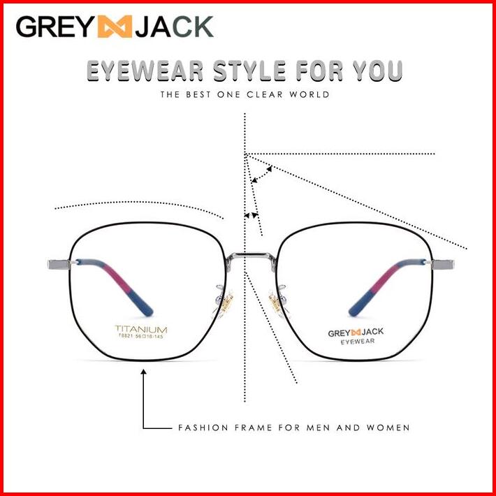 Grey Jack Frame Kacamata Frame Titanium Model Kotak Fashion Pria Wanita Bisa Minus Antiradiasi Bluecromic 8821
