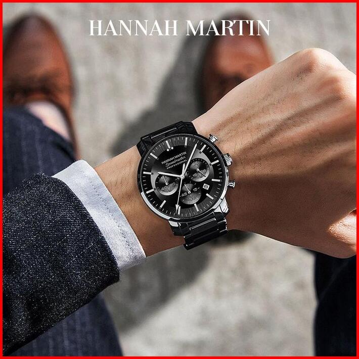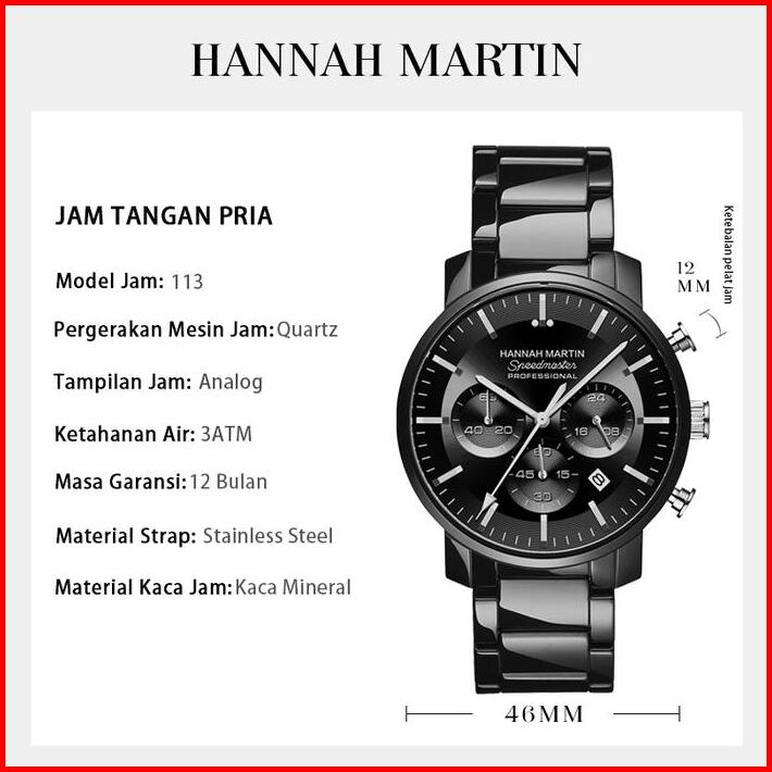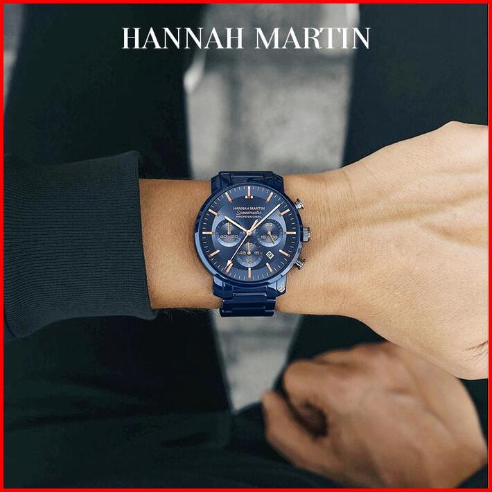 Hannah Martin Jam Tangan Pria 100 Original Keren Tahan Air Cowok Kronograf Quartz Analog Laki Hitam Biru 113 Stainless W
