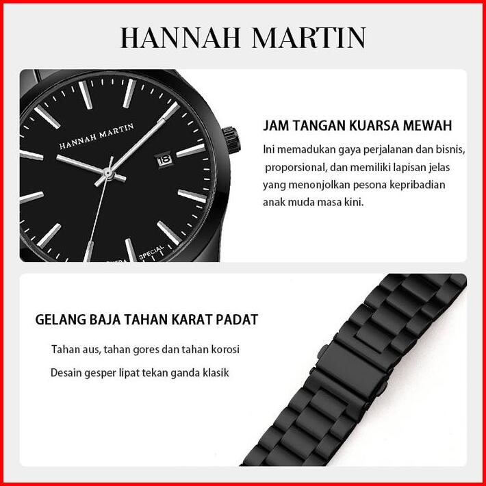 Hannah Martin Jam Tangan Pria 100 Original Business Analog Tanggal Stainless Steel 1756 Watches Kedap Air Blue Men S Wat