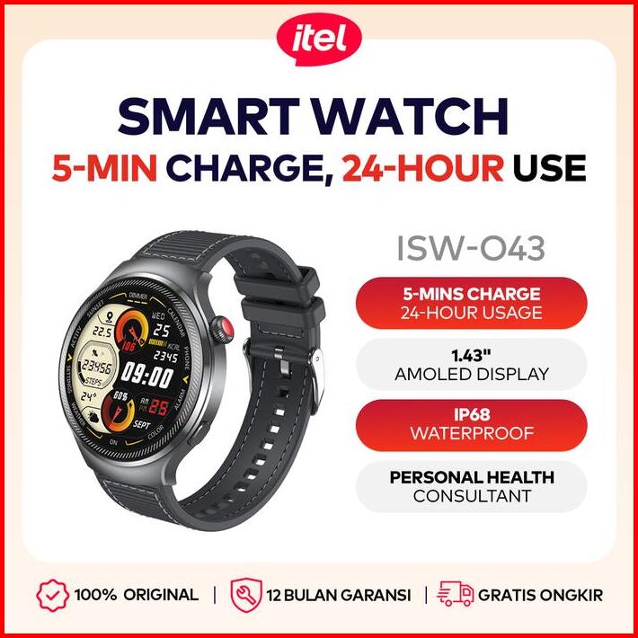 Itel Smartwatch O43 Max Watch 1.43 Inch Amoled Touch Screen Ip68 Water Proof Jam Tangan Pria Fitness Tracking Smart Band