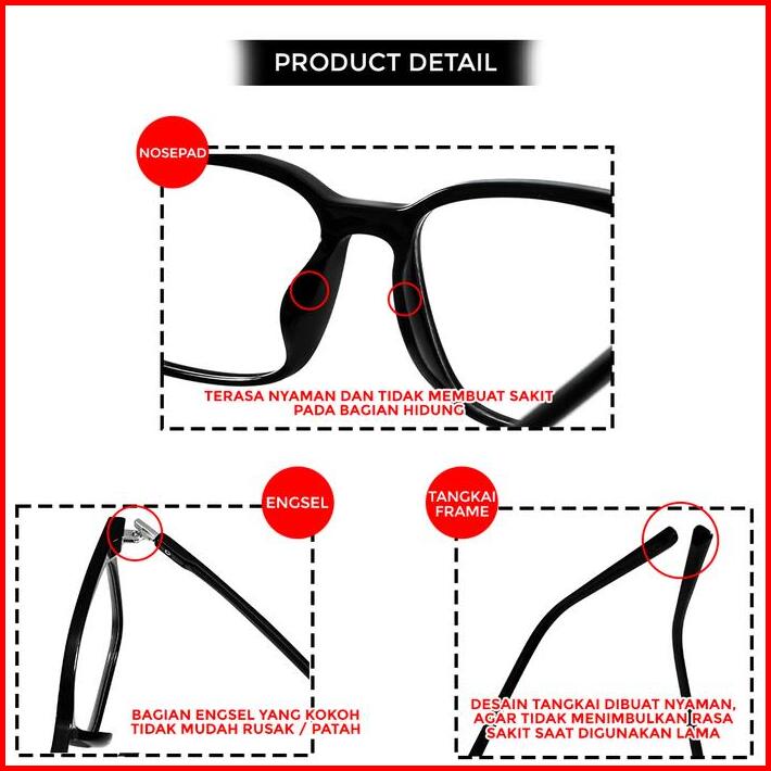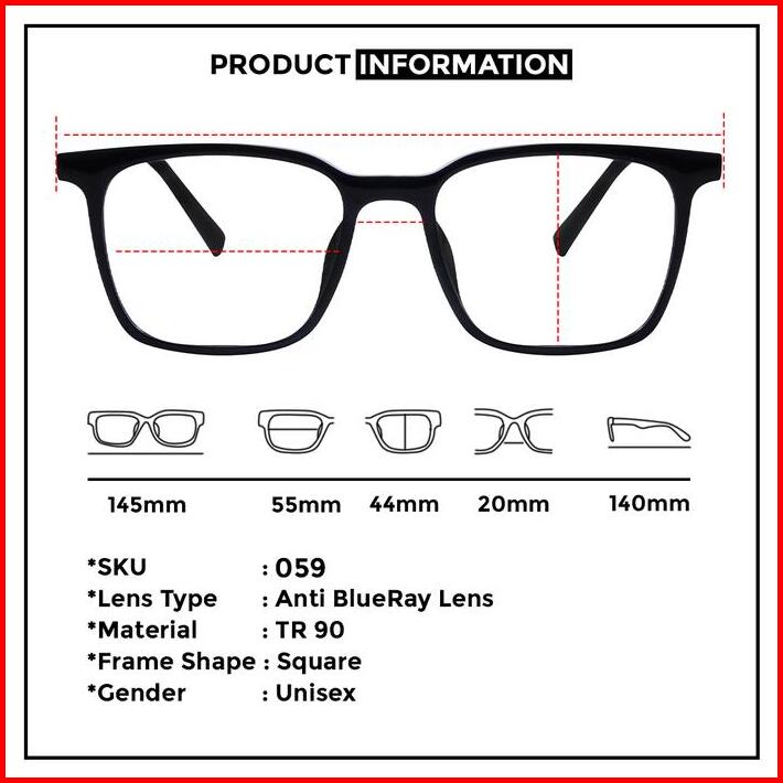 Kacamata Frame Kotak Lensa Anti Blueray Pria Wanita Berrybarton 059