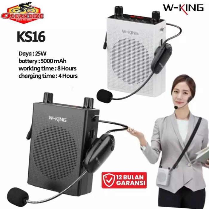 WKING SPEAKER PINGGANG TOUR GUIDE MIC KARAOKE W-KING KS16 BLUETOOTH - HITAM