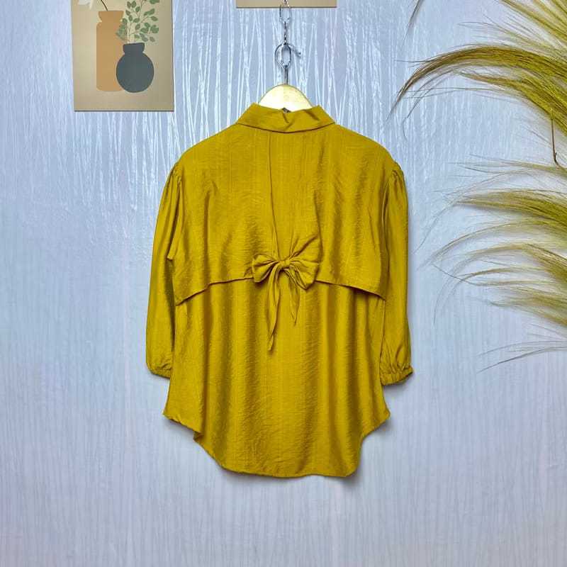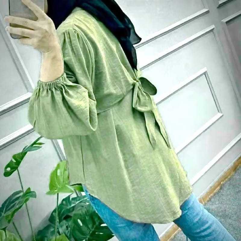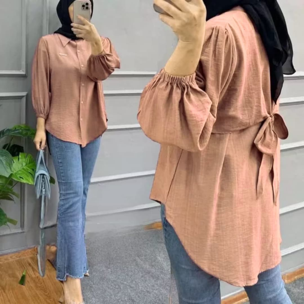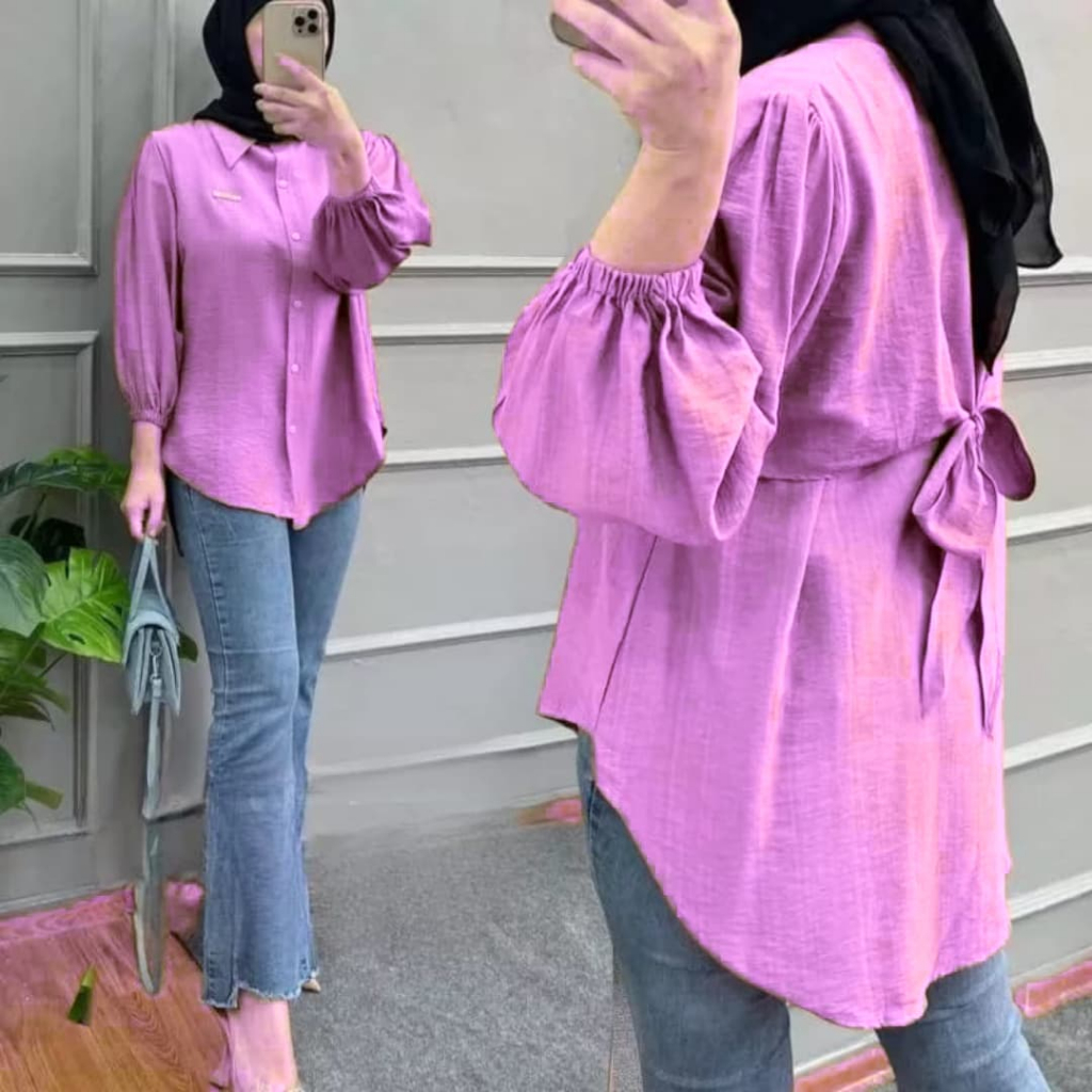 Atasan wanita lengan panjang(karet)cringkle airflow variasi pita belakang gaya dinamis overzise