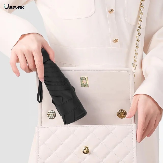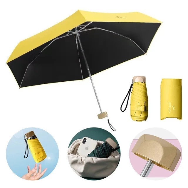 Payung Lipat Mini Anti UV Ringan Tahan Panas Hujan Sinar Matahari Premium Lapis Hitam UPF50