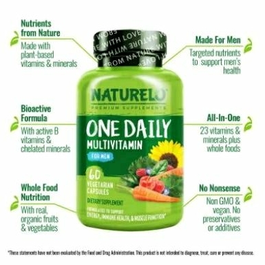 NATURELO - RANKED NO.1 BEST MULTIVITAMIN - ONE DAILY MULTIVITAMIN FOR MEN - 60 CAPSULES