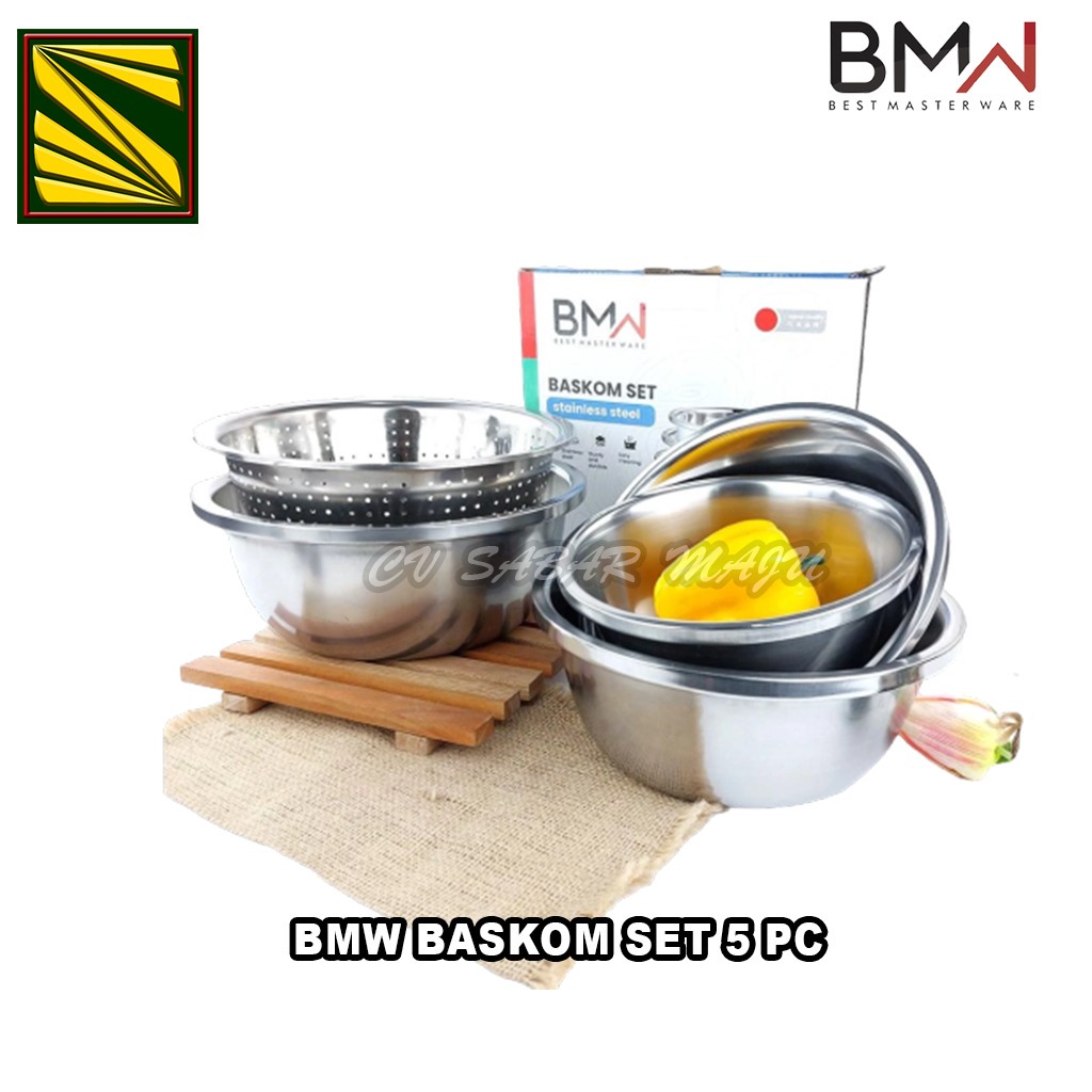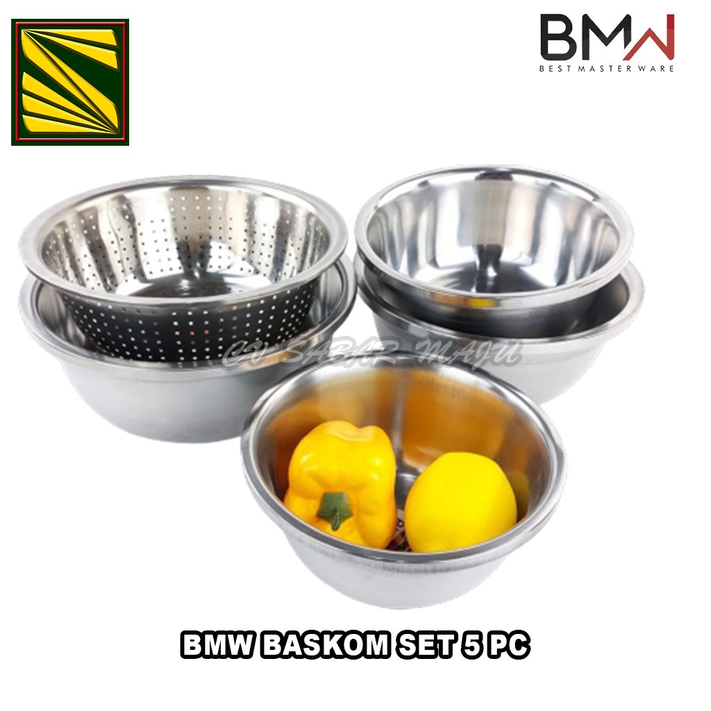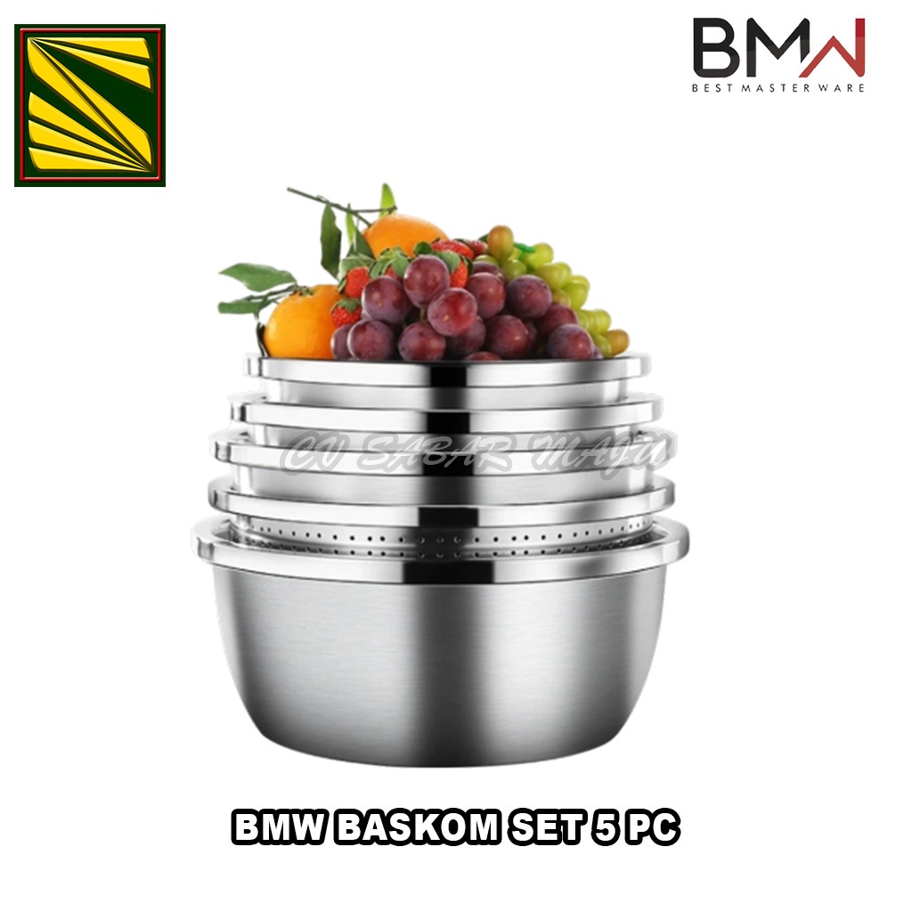 BMW Kitchenware - Baskom Stainless 5 in 1 Wadah Cuci Beras Buah Sayur Baskom Set Wadah Sayur Buah
