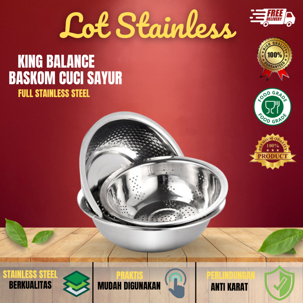 LOTS STAINLESS - Baskom Bolong Wadah Cuci Sayur | Penyaring Stainless Steel