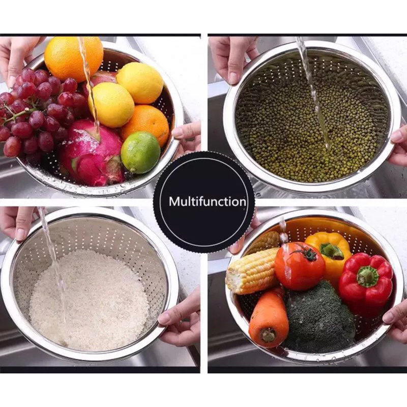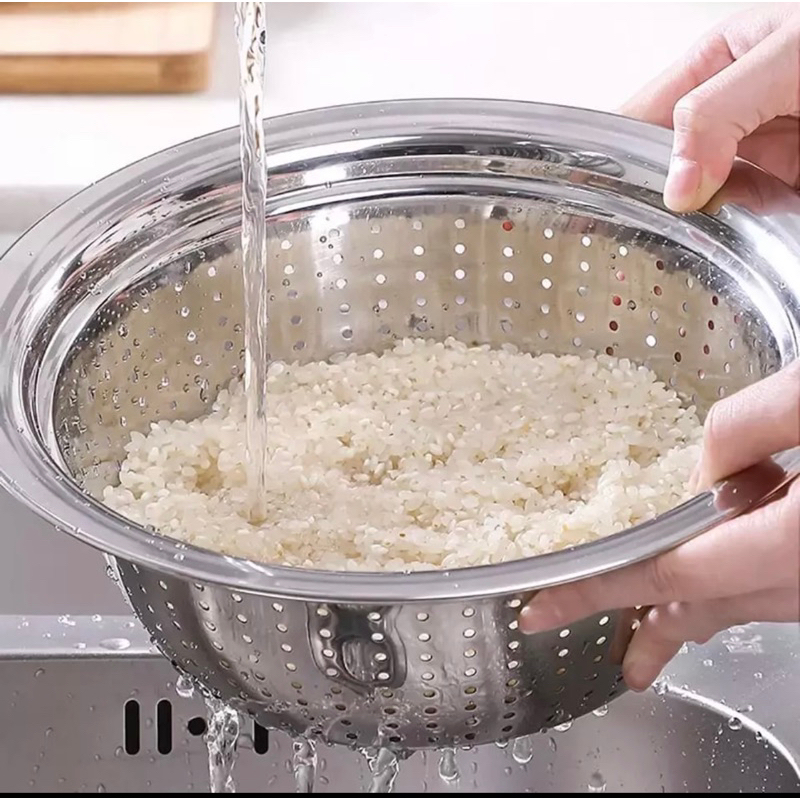 Baskom lubang stainless tebal / Baskom bolong / baskom cuci beras dan sayur