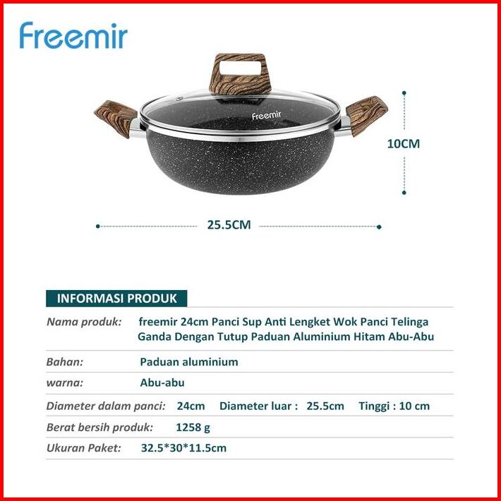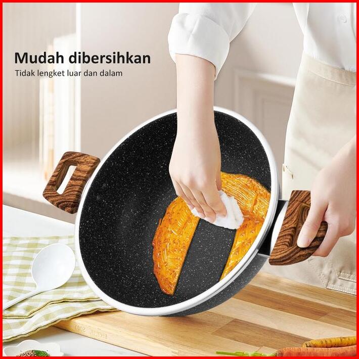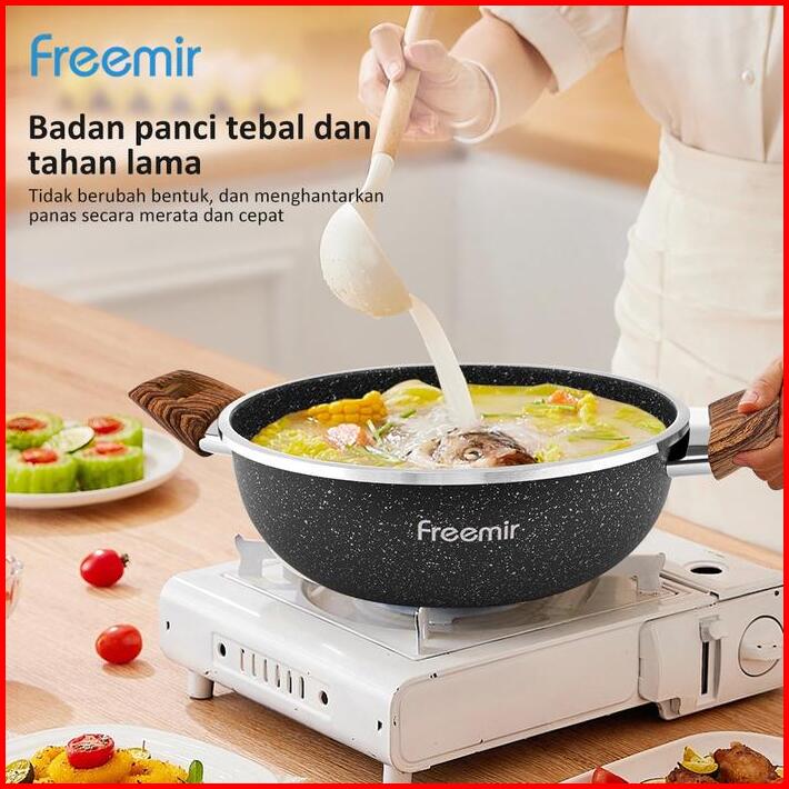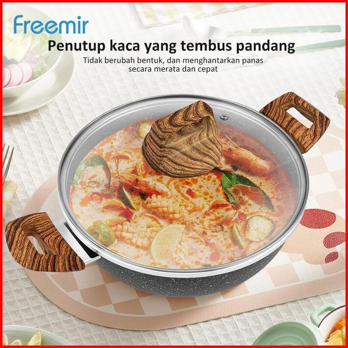 Freemir Wajan 24 Cm Panci Sup Anti Lengket Tutup Kaca Wok Aluminium