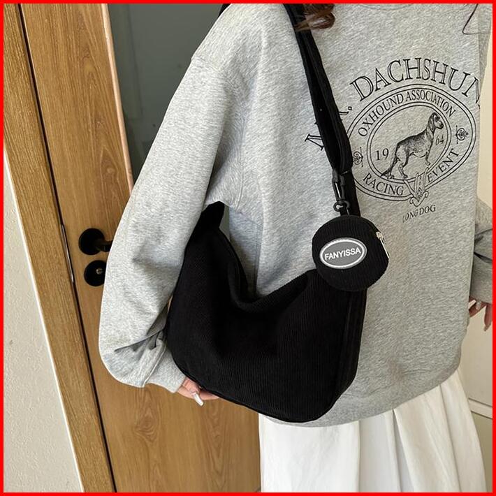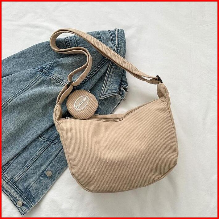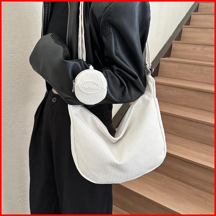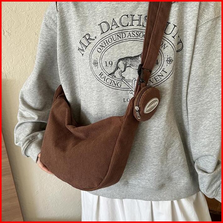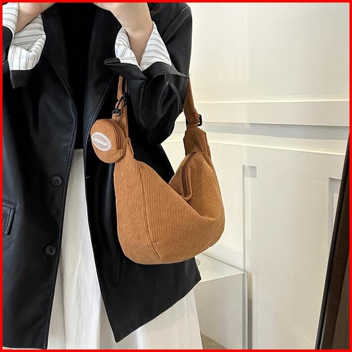 Ready Tas Pangsit Tas Selempang Wanita 2-in-1 Corduroy Dumpling Bag Tas Mahasiswa Casual Sling Bag Mode Komuter Bag Kapa