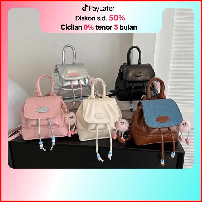 Chiyum Tas Ransel Kulit Pu Mini Sekolah Wanita Viral Tas Backpack Serut Siswa Lucu Versi Korean Style Dari Tas Kasual Ae