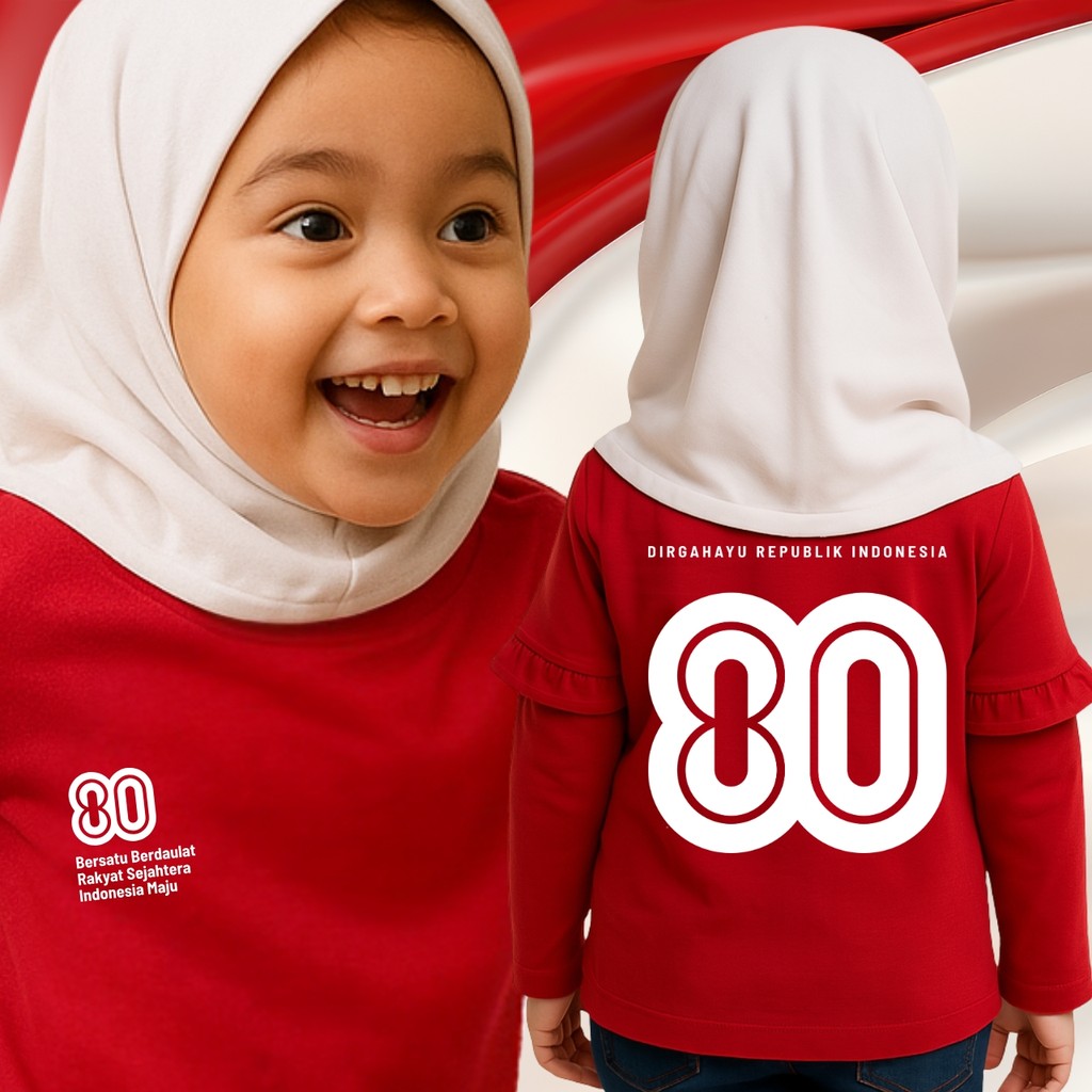 RESMI Kaos Anak Baju Merah Kemerdekaan Perempuan Agustus Atasan Indonesia Lengan Panjang HUT RI 80