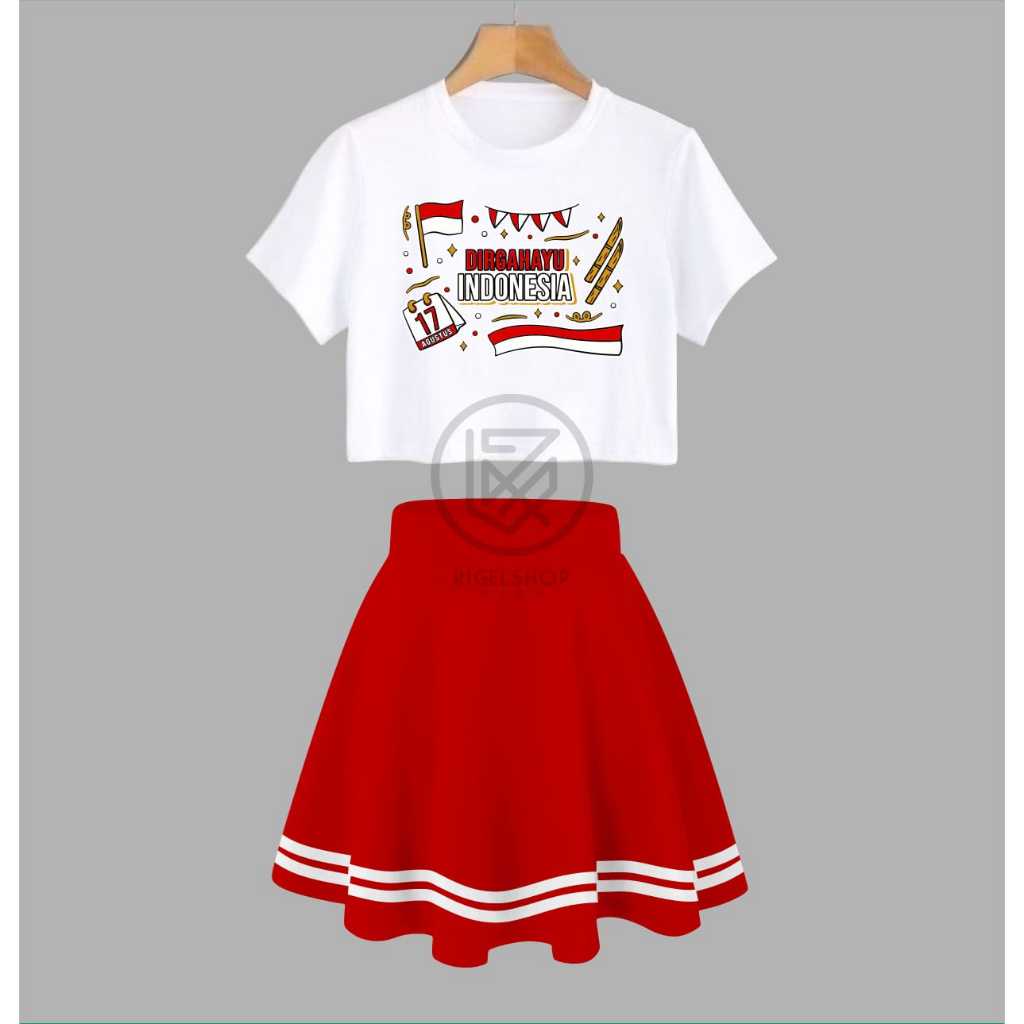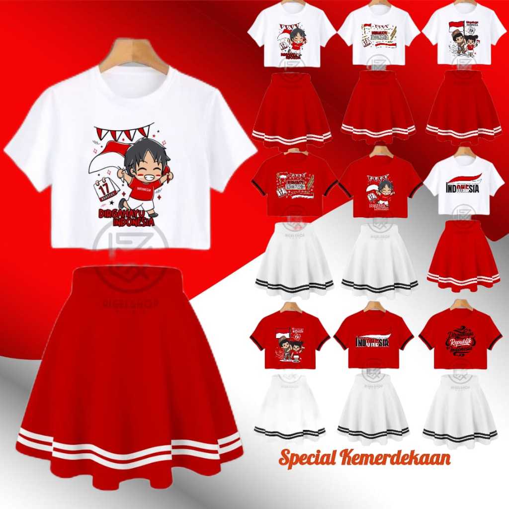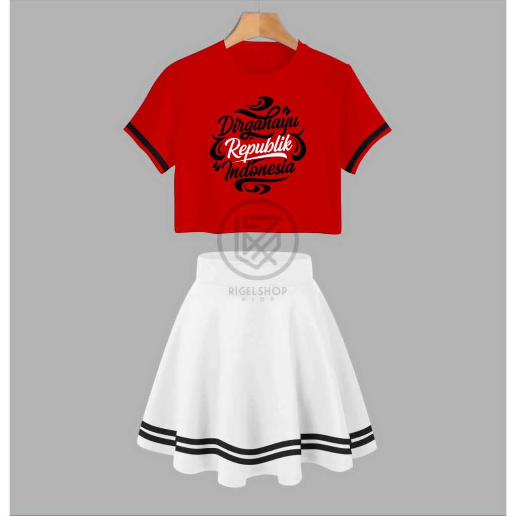 One Set Crop Top Baju Anak Dan Rok List Anak Perempuan Limited Edition Special Kemerdekaan Untuk Umur 1 Sampe 10 Tahun S