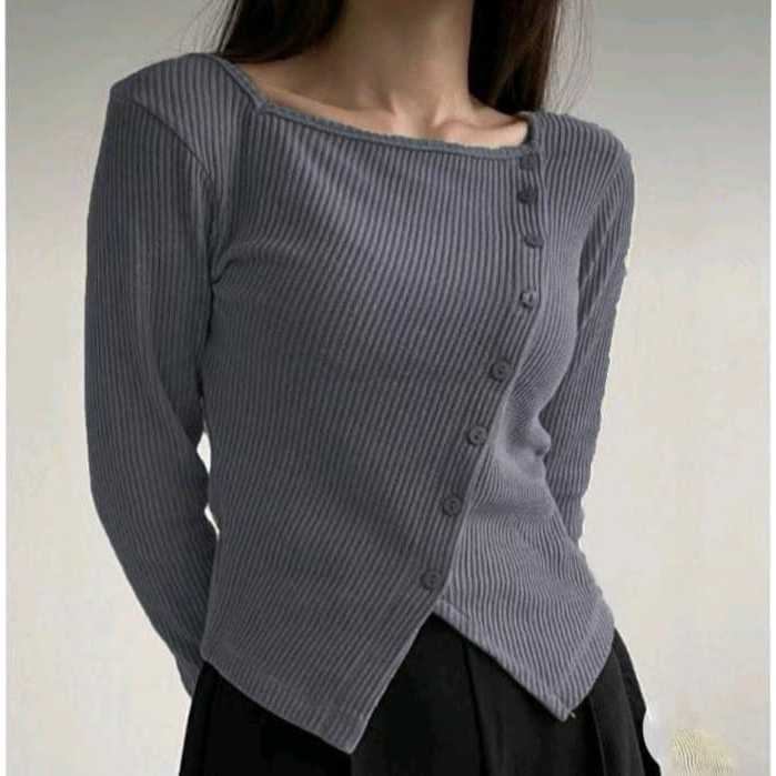 Blouse Rib Knit Basic Selly Faiq Korean Retro