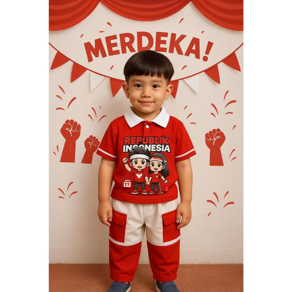 SETELAN ANAK TEMA HARI KEMERDEKAAN MODEL BAJU KERAH KEKINIAN