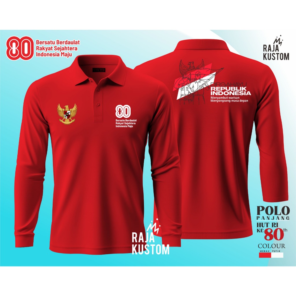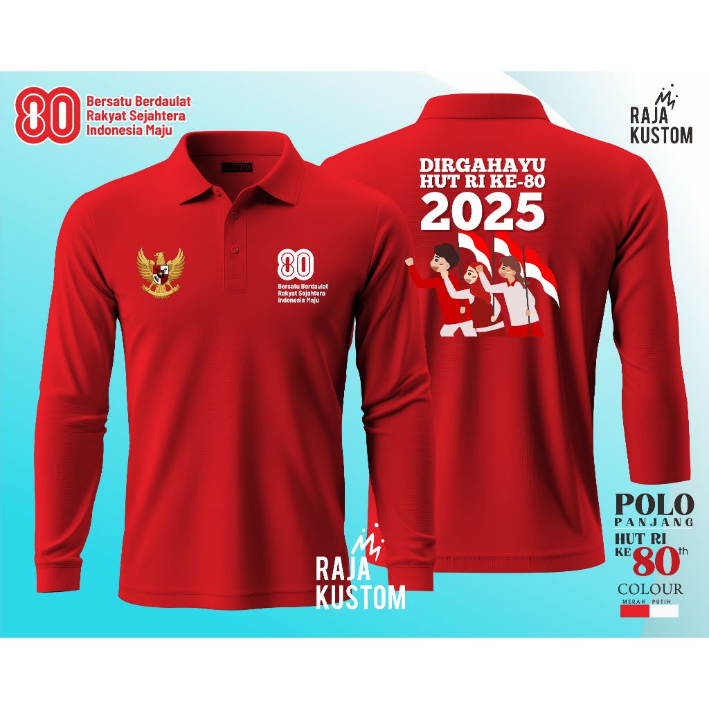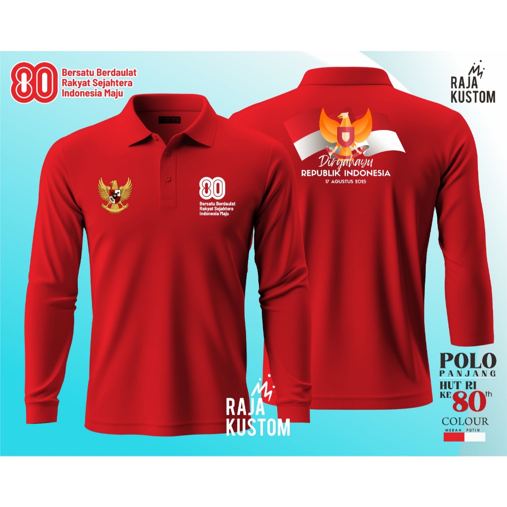 POLO 17 AGUSTUS 2025 HUT RI KE 80 MERAH PUTIH KEMERDEKAAN INDONESIA LENGAN PANJANG DEWASA PREMIUM